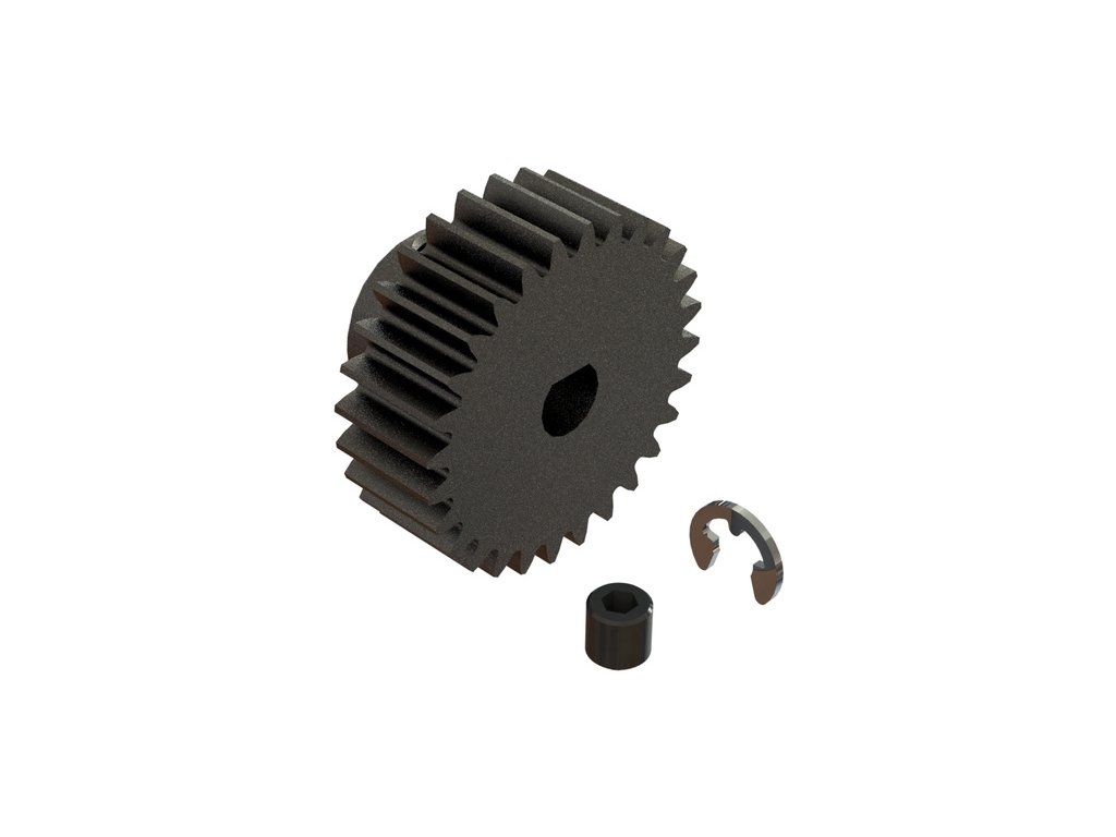 Tuningový díl pro RC modely aut Arrma 3S 4WD Bigrock, Granite, Senton, Typhon: pastorek 28T 0.8M Safe-D5. Otvor pro hřídel s ploškou ve tvaru D zajistí pevné spojení i když se uvolní pastorek.