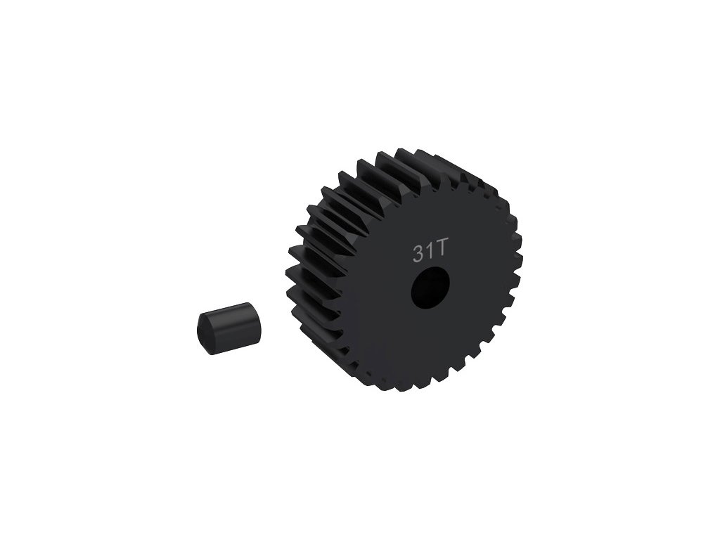 Arrma pastorek na hřídel 3.2 mm s 31 zuby a modulem ozubení 50.8DP (0,5 mm) pro RC modely aut. Vyrobeno z kalené oceli. CNC obráběný. Stavěcí šroub M3 x 4 mm.