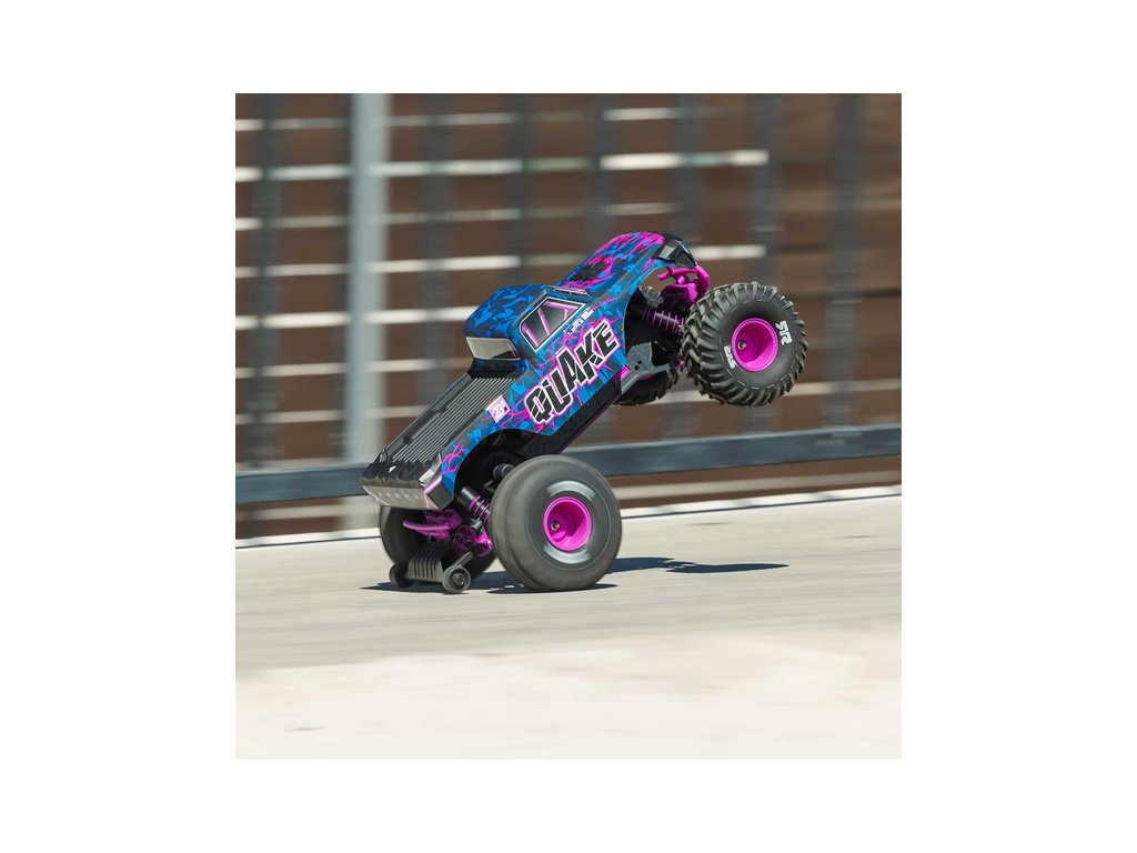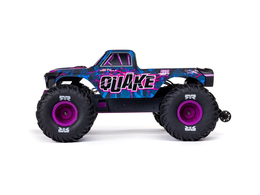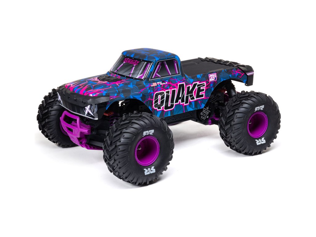 RC model auta Arrma Quake 223S BLX typu monster truck s náhonem 2WD, nezávislým zavěšením, olejovými tlumiči a výkonným střídavým pohonem, dosáhne rychlosti až 80 km/h. To vše za dostupnou cenu pro takto výkonný model. Odolnost, výkon BLX a precizní maketové zpracování jsou vlastní značce Arrma a i tohoto modelu jsou zachovány všechny důležité vlastnosti. Obsažena je exkluzivní stabilizace jízdy DSC. RC auto je určeno pro děti, dospělé, začátečníky i zkušené jezdce, kteří získají hotový, odolný a rychlý model.