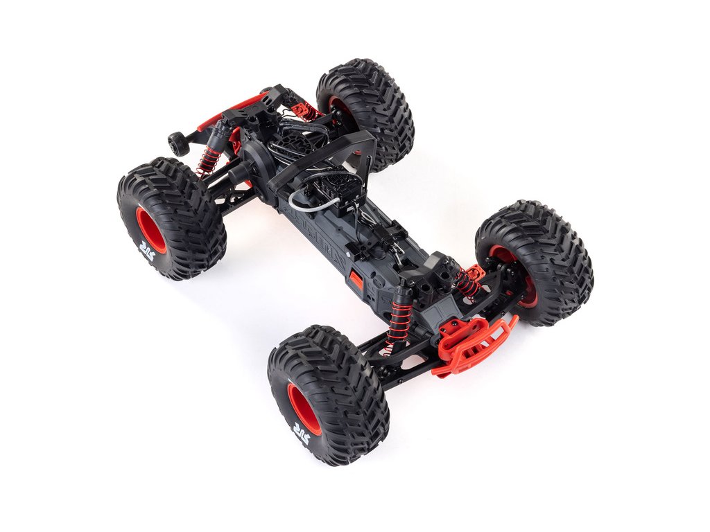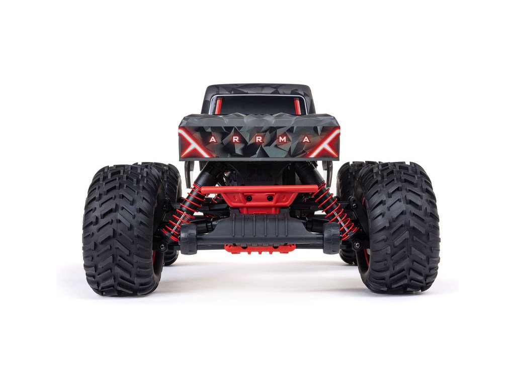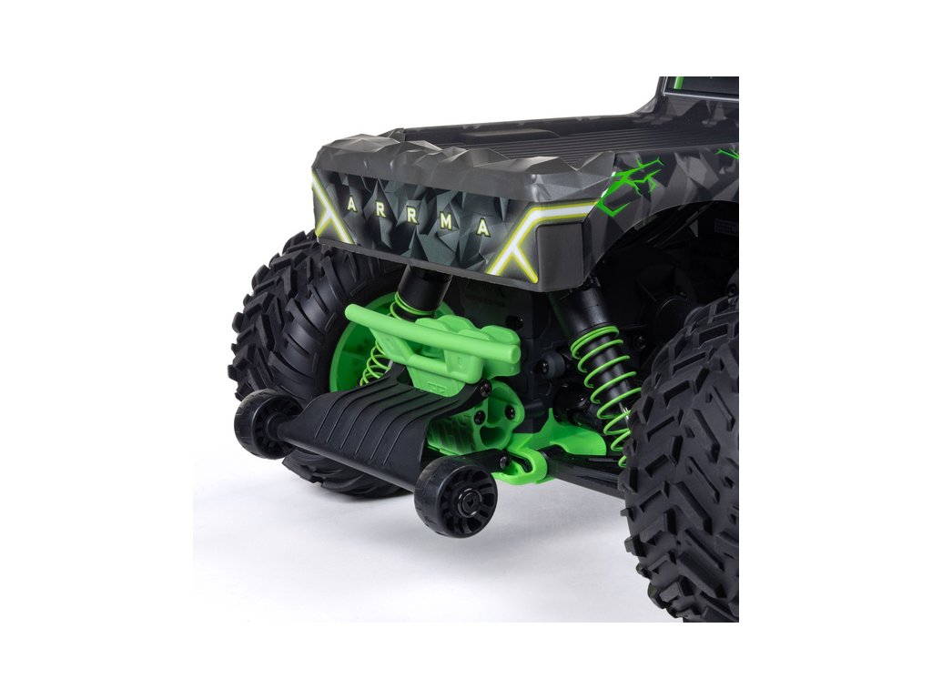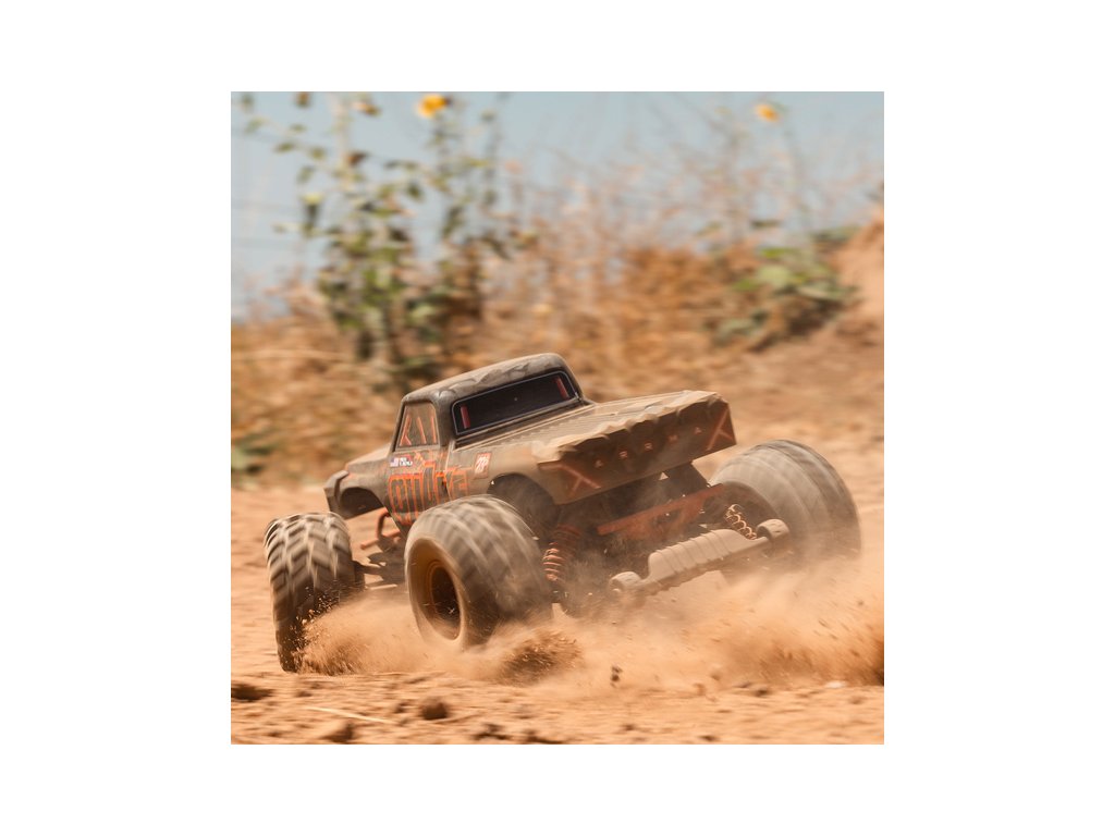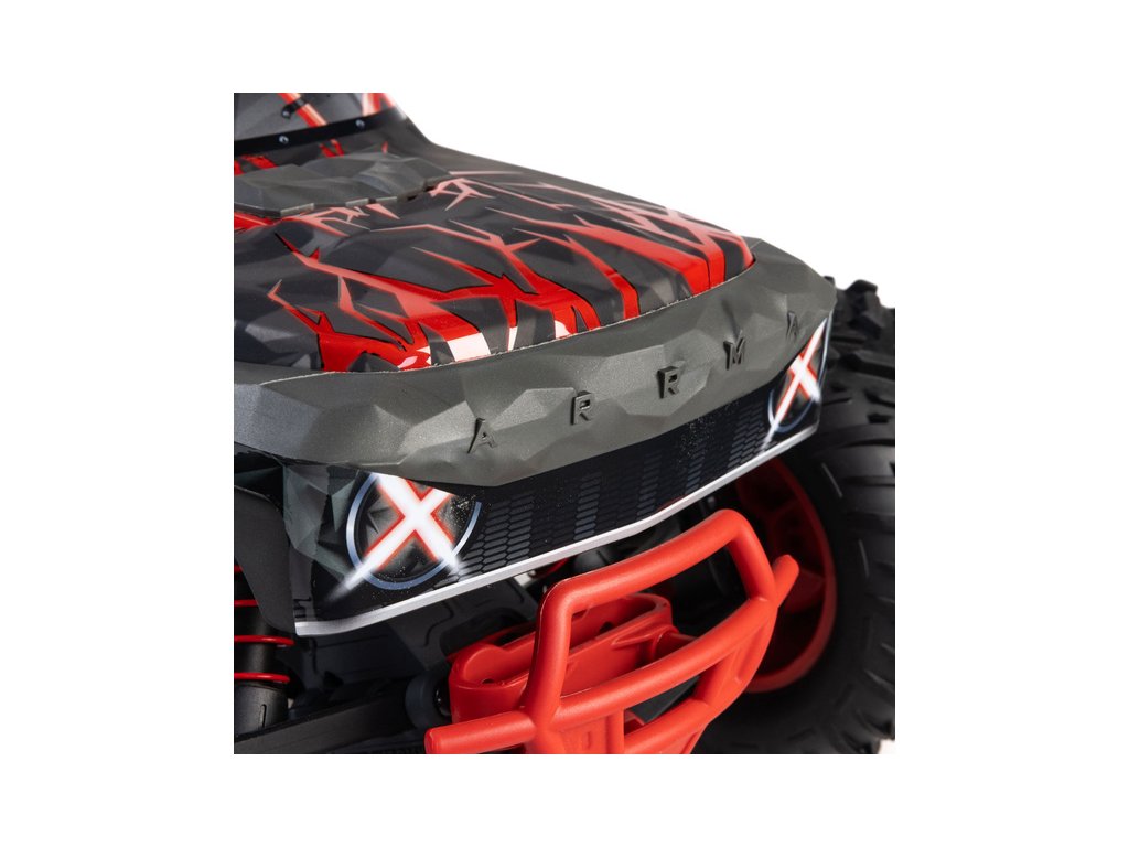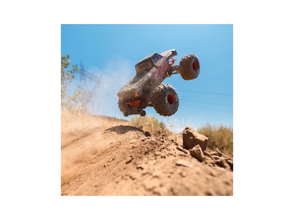 RC model monster trucku Arrma Quake 223S BLX s výkonným střídavým motorem a rychlostí až 80 km/h. Náhon 2WD, nezávislé zavěšení, olejové tlumiče, řídící jednotka Spektrum 45A SLT, napájení 2-3S LiPo, elektronická stabilizace DSC.