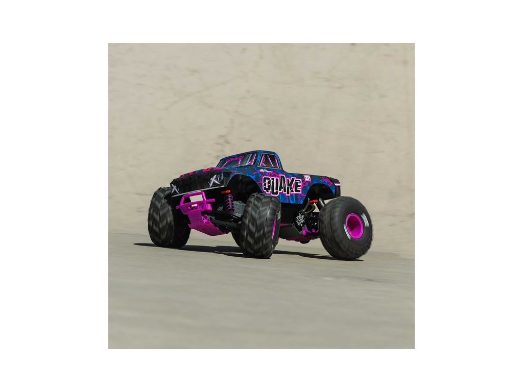 RC model auta Arrma Quake 223S BLX typu monster truck s náhonem 2WD, nezávislým zavěšením, olejovými tlumiči a výkonným střídavým pohonem, dosáhne rychlosti až 80 km/h. To vše za dostupnou cenu pro takto výkonný model. Odolnost, výkon BLX a precizní maketové zpracování jsou vlastní značce Arrma a i tohoto modelu jsou zachovány všechny důležité vlastnosti. Obsažena je exkluzivní stabilizace jízdy DSC. RC auto je určeno pro děti, dospělé, začátečníky i zkušené jezdce, kteří získají hotový, odolný a rychlý model.