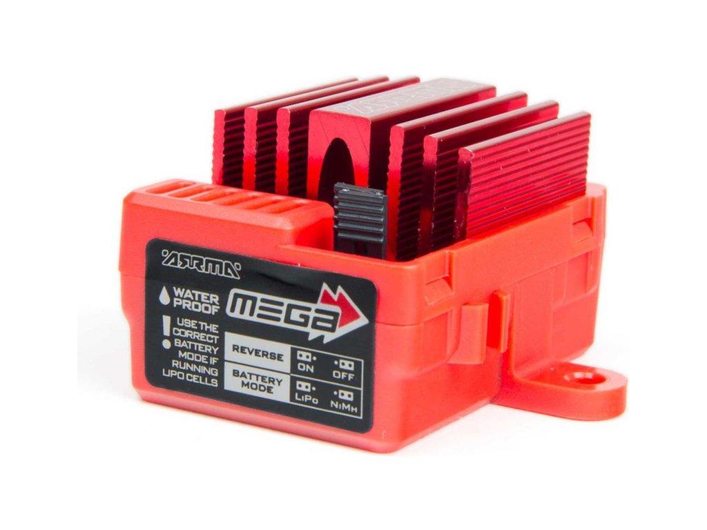 Stejnosměrný regulátor Arrma Mega 2S s konektorem pro připojení baterie IC3. Integrovaná ochrana proti podvybití LiPo akumulátoru. Jednoduché nastavení pomocí zkratovacího konektoru. Účinný chladič pro odvod tepla od výkonových tranzistorů. Vypínač s pryžovým těsněním. Určeno do modelů 1:10.