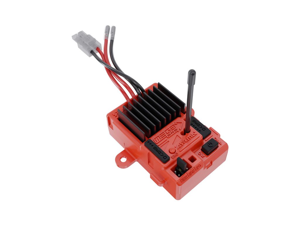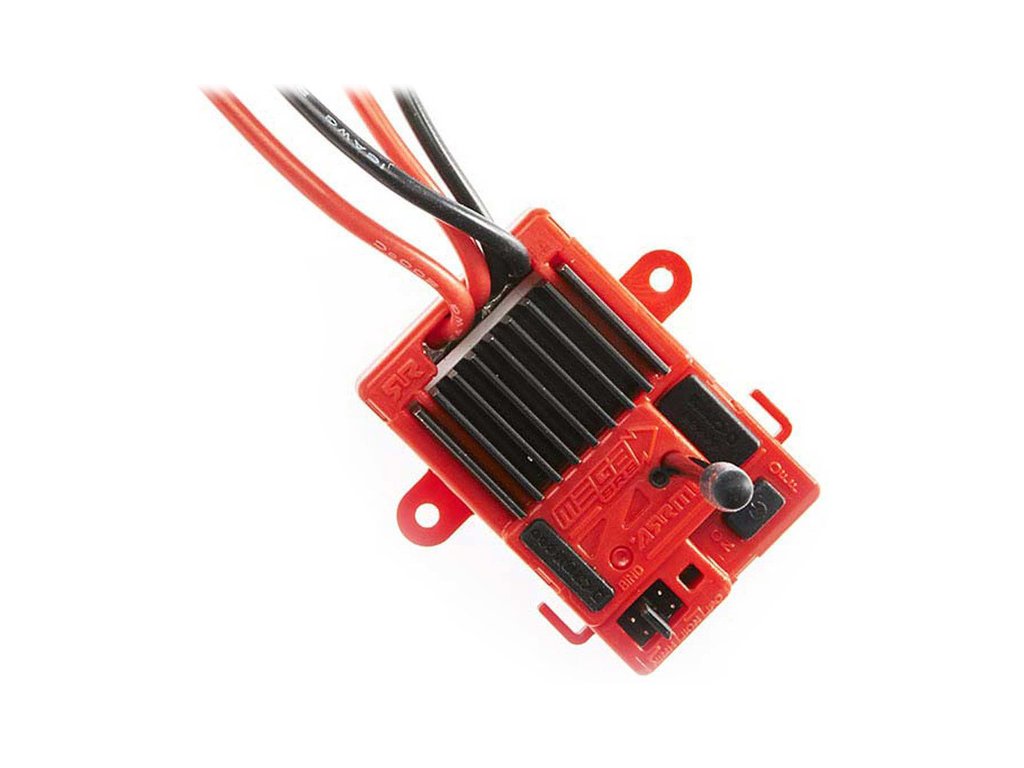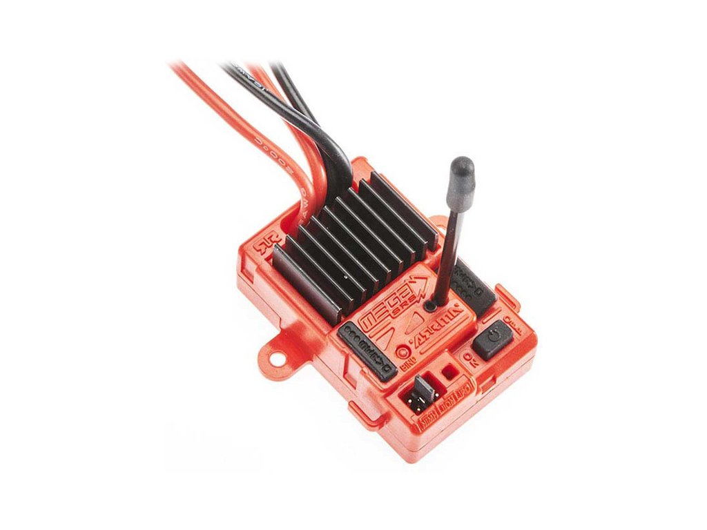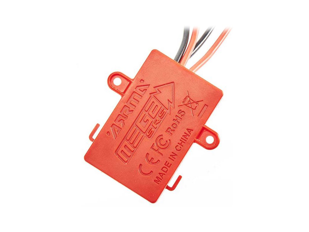 Arrma Řídící jednotka Mega SRS 3-v-1, v sobě kombinuje stejnosměrný regulátor, přijímač a řízení serva. Nastavení akumulátoru zkratovacím konektorem. Ochrana proti přepětí. Doporučené akumulátory 7.4V (2S) Li-Ion, 2S LiPo, 6-7 čl. NiMH. BEC 5V. lze připojit servo s 3 nebo 5žilovým kabelem. Voděodolný vypínač.