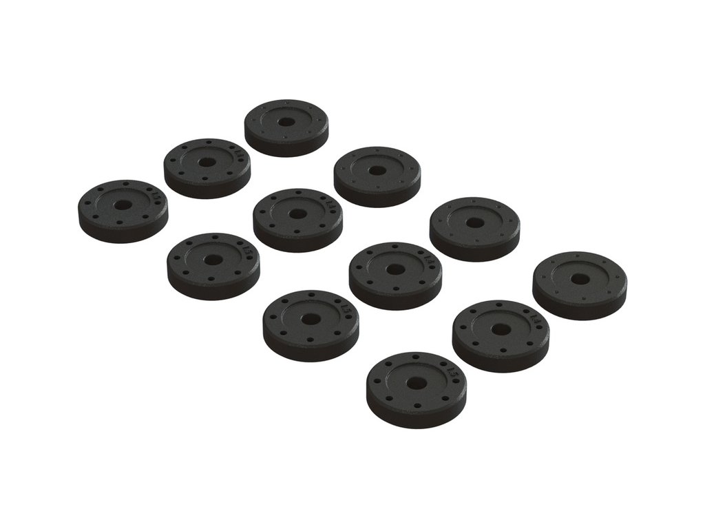 Vysoce kvalitní sada pístů tlumiče Arrma: 1.4mm (8), 1.5mm (8), nulový (4). Tři sady pístů s různými průměru otvorů pro dokonalé vyladění chodu tlumičů.