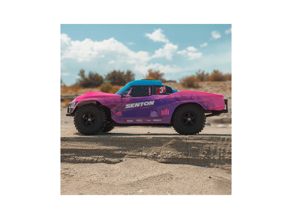 RC model auta Arrma Senton 223S BLX typu Short Course s náhonem 4WD, nezávislým zavěšením, olejovými tlumiči a výkonným střídavým pohonem, dosáhne rychlosti až 80 km/h. To vše za dostupnou cenu pro takto výkonný model. Výborné jízdní vlastnosti zajišťuje pohon všech kol s nápravovými diferenciály. Obsažena je exkluzivní stabilizace jízdy DSC. RC auto je určeno pro děti, dospělé, začátečníky i zkušené jezdce, kteří získají hotový, odolný a rychlý model. To vše je zabaleno do pěkně zpracované karoserie se skrytým systémem uchycení.