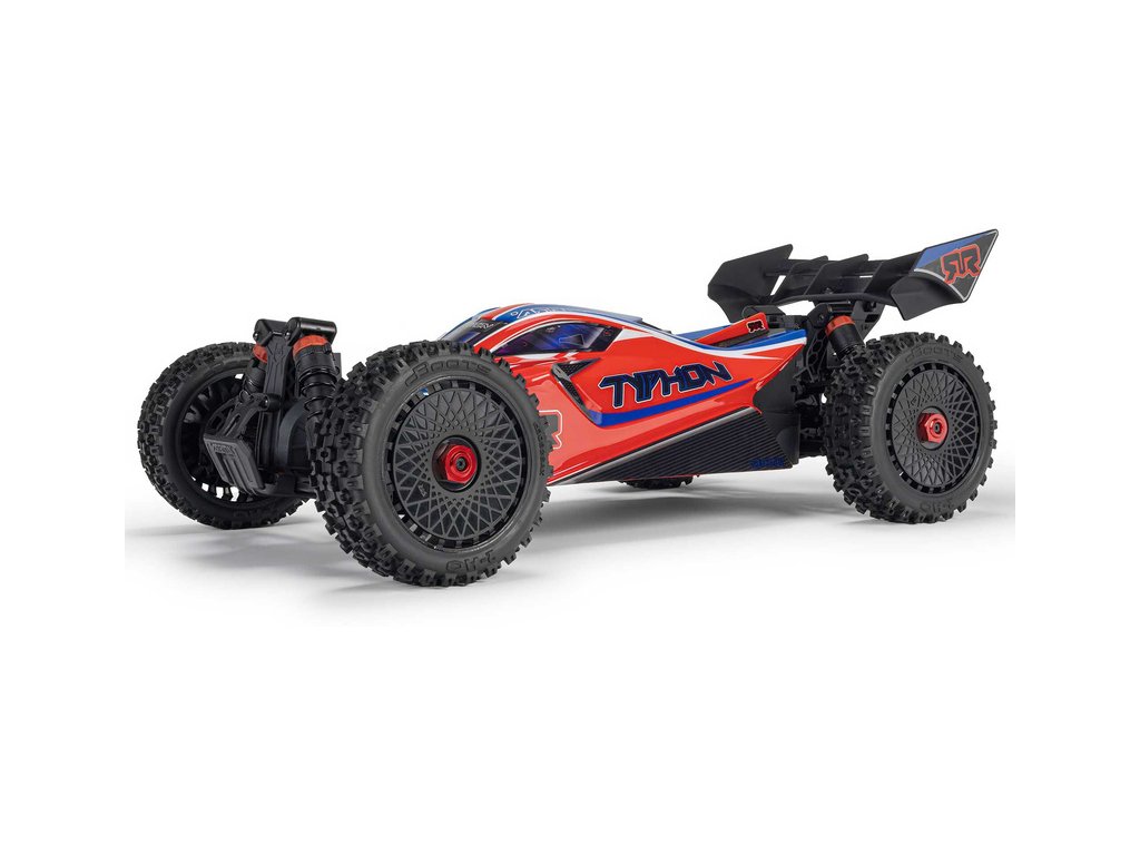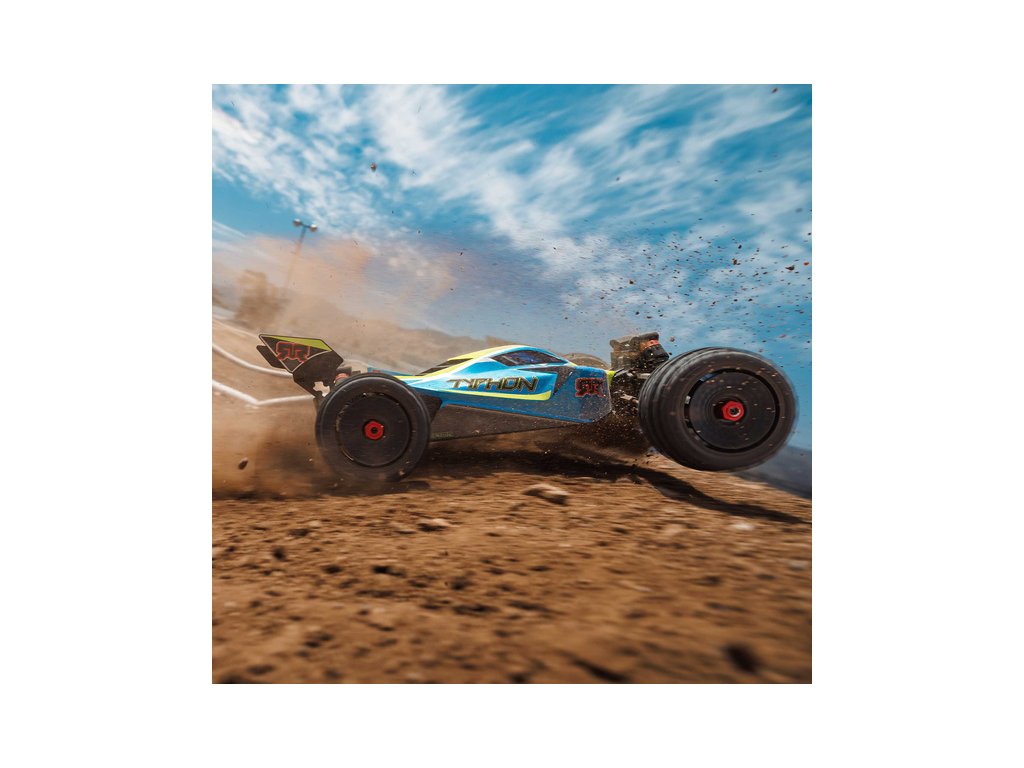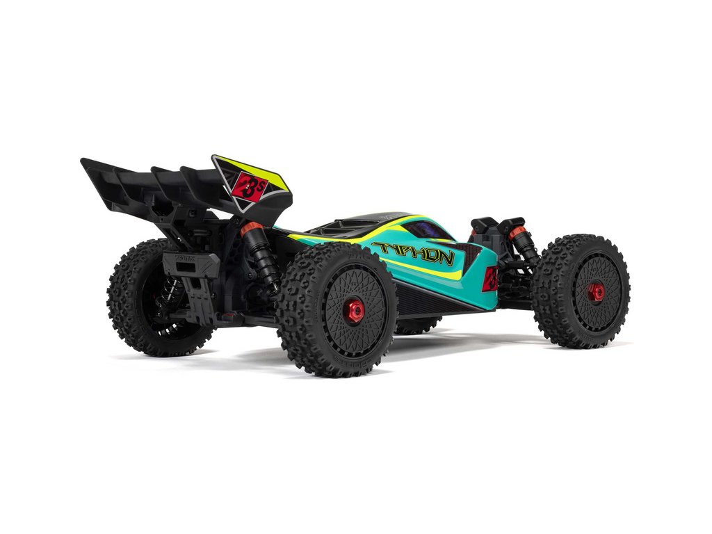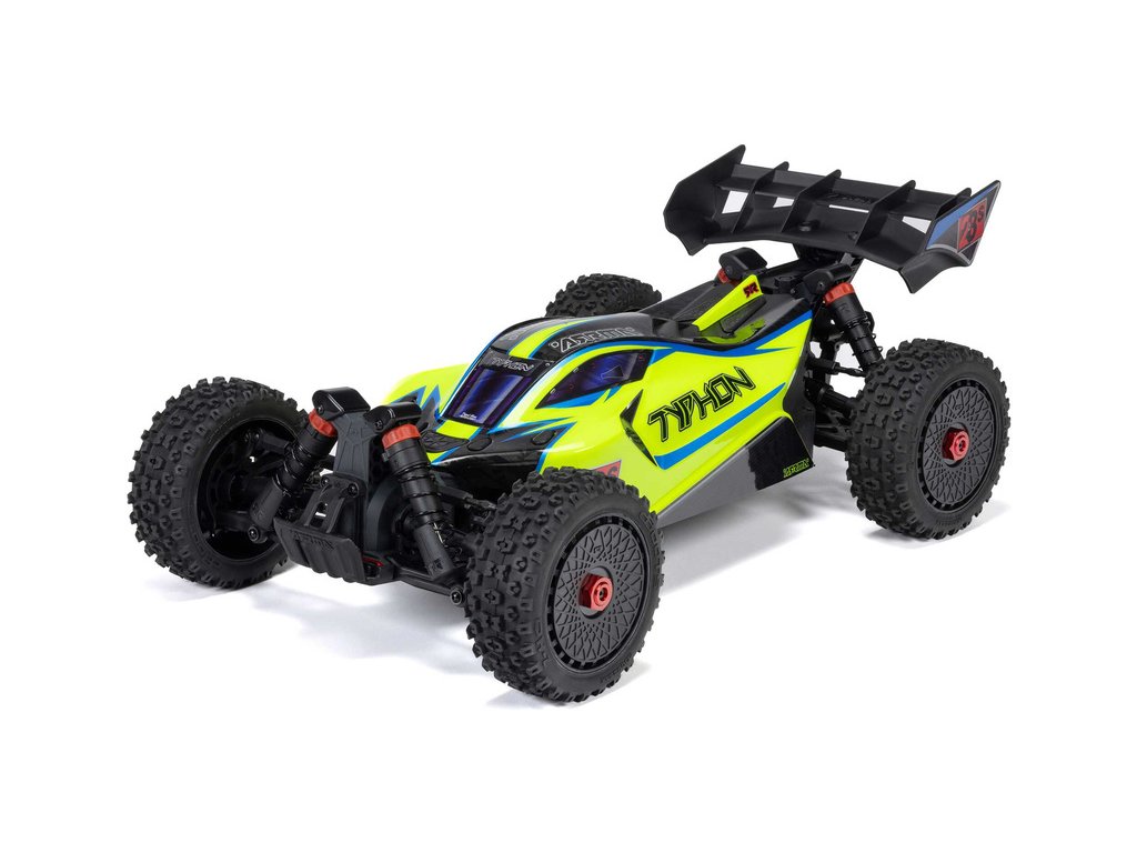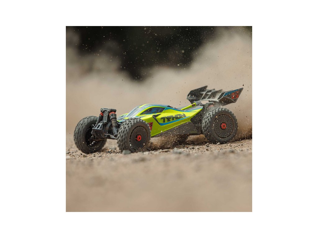 RC model auta Arrma Typhon 223S BLX typu Buggy s náhonem 4WD, nezávislým zavěšením, olejovými tlumiči a výkonným střídavým pohonem, dosáhne rychlosti až 80 km/h. To vše za dostupnou cenu pro takto výkonný model. Výborné jízdní vlastnosti zajišťuje pohon všech kol se středovým a nápravovými diferenciály. Obsažena je exkluzivní stabilizace jízdy DSC. RC auto je určeno pro děti, dospělé, začátečníky i zkušené jezdce, kteří získají hotový, odolný a rychlý model. To vše je zabaleno do pěkně zpracované karoserie se skrytým bezsponkovým systémem uchycení.