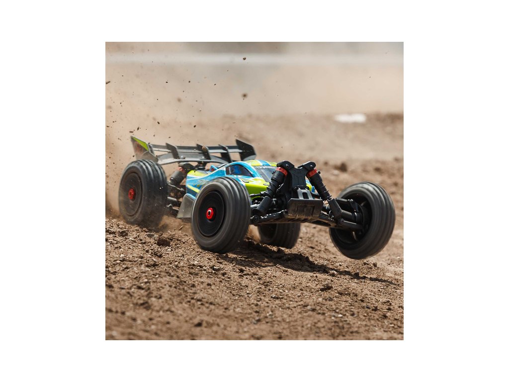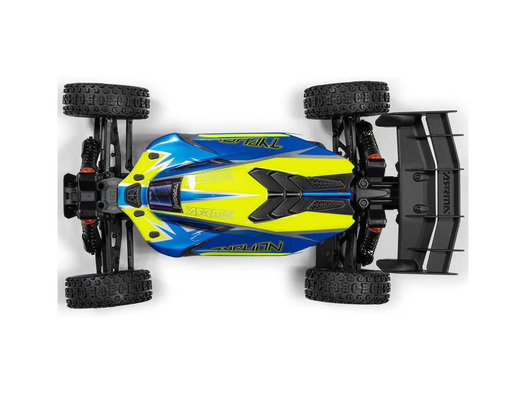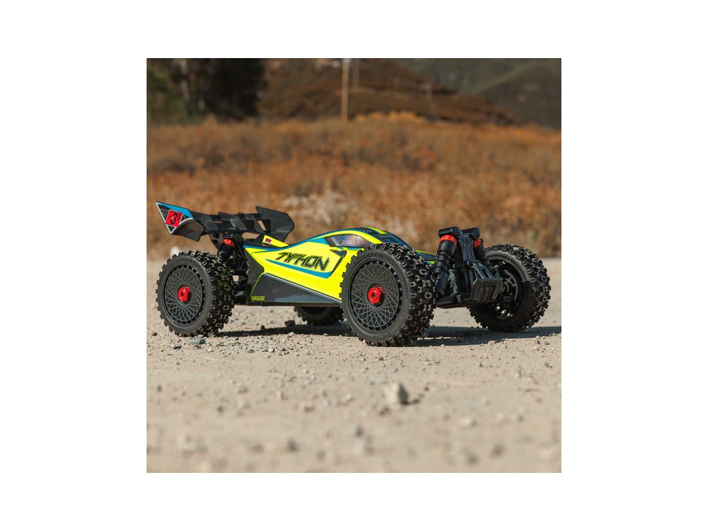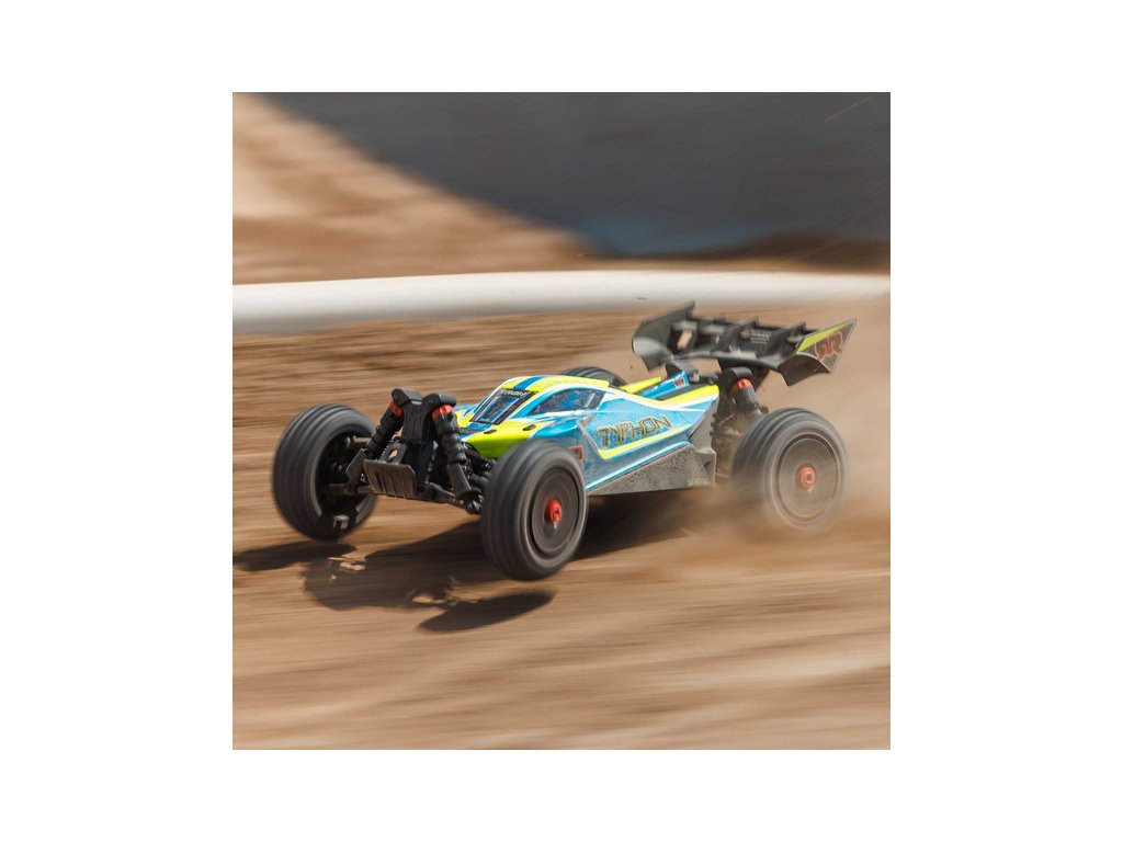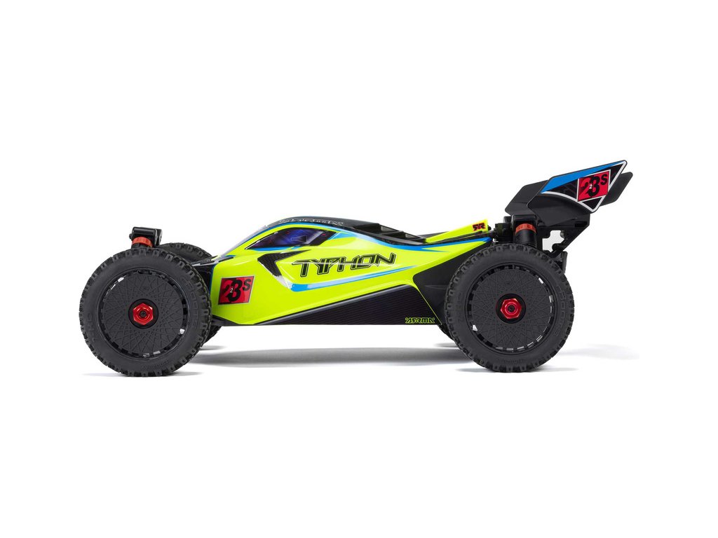 RC model auta Arrma Typhon 223S BLX typu Buggy s náhonem 4WD, nezávislým zavěšením, olejovými tlumiči a výkonným střídavým pohonem, dosáhne rychlosti až 80 km/h. To vše za dostupnou cenu pro takto výkonný model. Výborné jízdní vlastnosti zajišťuje pohon všech kol se středovým a nápravovými diferenciály. Obsažena je exkluzivní stabilizace jízdy DSC. RC auto je určeno pro děti, dospělé, začátečníky i zkušené jezdce, kteří získají hotový, odolný a rychlý model. To vše je zabaleno do pěkně zpracované karoserie se skrytým bezsponkovým systémem uchycení.