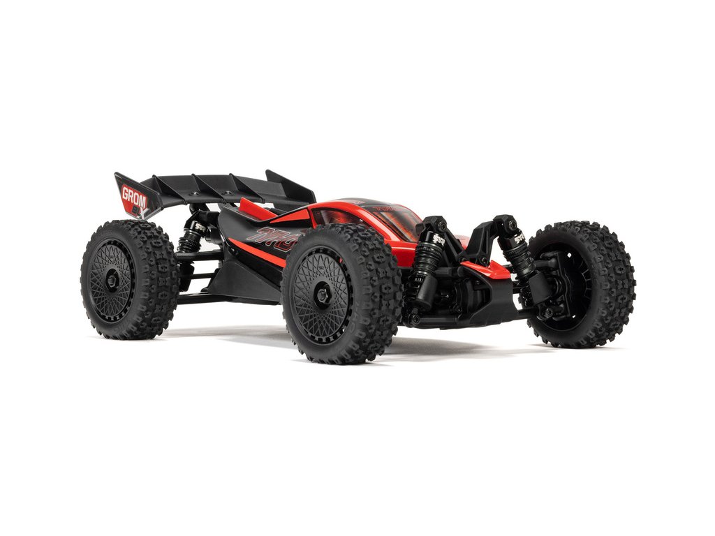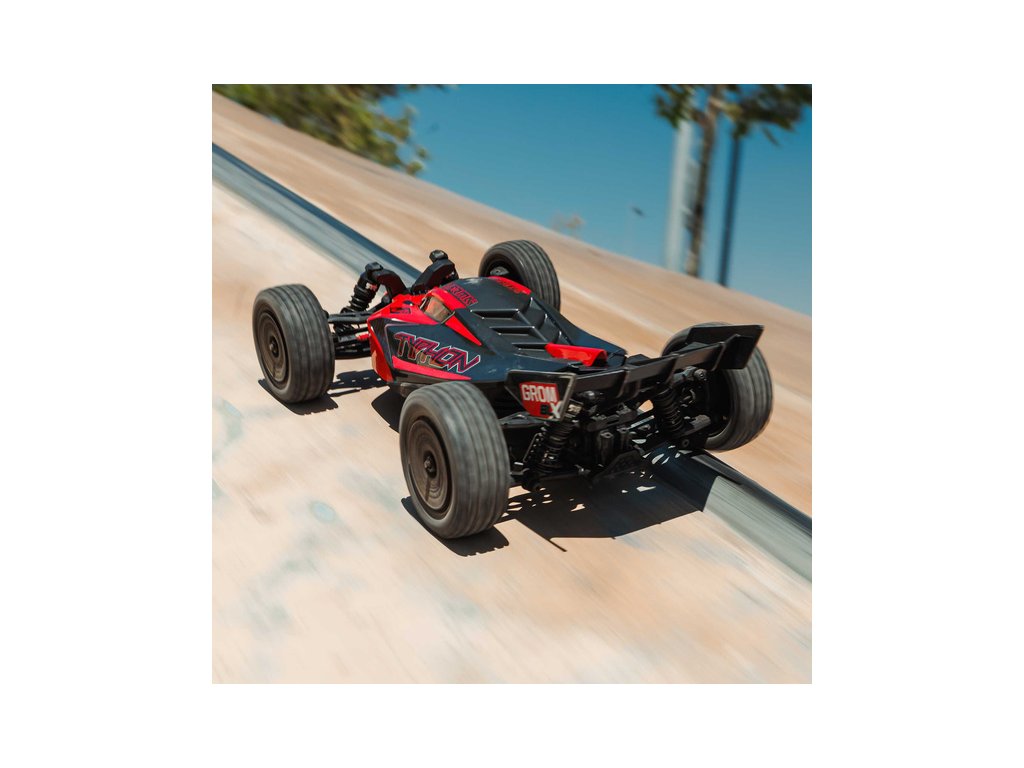 RC model auta Arrma Typhon Grom v měřítku 1:14, s náhonem 4WD, výkonným střídavým motorem a rychlostí až 56 km/h. Precizně zkonstruovaná malá zábavná buggy. Továrně instalované upgrady, stabilizace DSC. Včetně baterie 2S LiPo a USB nabíječe.
