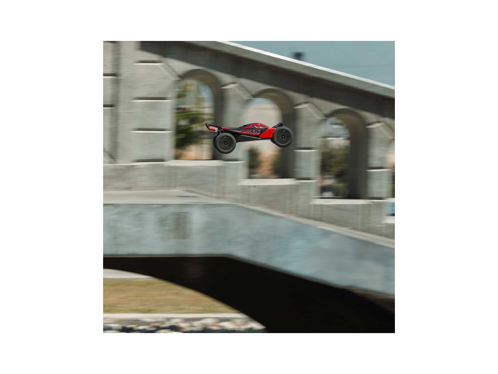 Arrma Typhon Grom 223S BLX je výkonnostně všestranný model a může postupně růst s vašimi řidičskými schopnostmi. Pro začátek můžete model provozovat na obsažený 2S LiPo akumulátor a omezit výkon plynu 50%. Později můžete zvýšit plyn na 75% a 100% a dokonce do modelu připojit samostatně prodejný 3S LiPo akumulátor a dosáhnout rychlosti až 80 km/h.