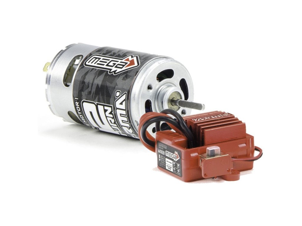 Stejnosměrný regulátor Arrma Mega 12T s vodě-odolným* vypínačem, pasivním chlazením a ochranou proti přepětí. Napájení dvoučlánkem LiPo nebo 6 až 7 čl. NiMH akumulátorem. Jednoduché nastavení typu akumulátoru a zpátečky zkratovacími propojkami.