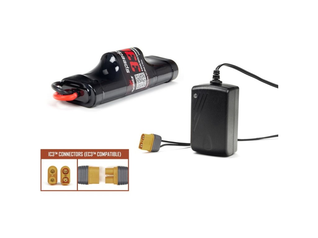 Součástí balení je síťový nabíječ s automatikou a pohonný akumulátor NiMH 8.4V s kapacitou 3300 mAh. Akumulátor je vybaven nejnovějším konektorem IC3.