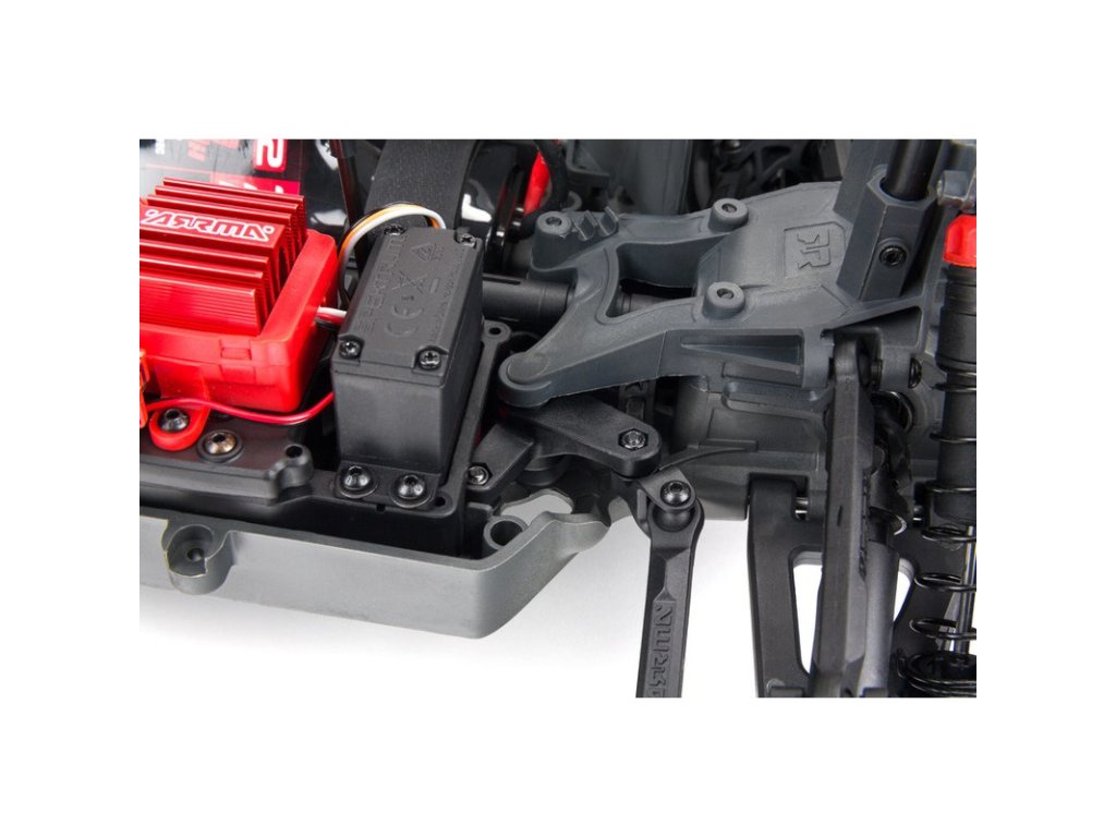 Konstrukce šasi RC auta je uspořádaná tak, aby bylo dosaženo perfektního vyvážení RC modelu auta. Hnací hřídel je uprostřed, akumulátor na jedné straně a elektronika na straně druhé. Celé šasi je navíc opatřeno postranními kryty, které omezují pronikání nečistot do modelu. Akumulátor je pevně uložen na místě pomocí upínacích popruhů.