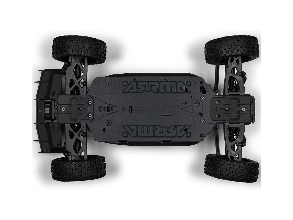 Karoserie je hotová nabarvená a využívá bezsponkový systém upevnění na šasi pro snadnou výměnu akumulátoru a přístup k elektronice. Model je vybaven kvalitní řídicí jednotkou Spektrum 2v1 s integrovaným regulátorem a přijímačem. Na jednotce lze snadno nastavit typ akumulátoru pomocí zkratovací propojky. Jednotka dále obsahuje port pro možnost zapojení externího přijímače. Velký motor 665 nově obsahuje hliníkový chladič s 35 mm ventilátorem pro udržení vhodné provozní teploty za všech okolností. Stačí doplnit akumulátor a nabíječku (prodávají se samostatně), poté můžete vyrazit se svým ARRMA TYPHON MEGA 665 4x4 na zahradu, do terénu nebo na nízkou trávu a užít si jízdu.