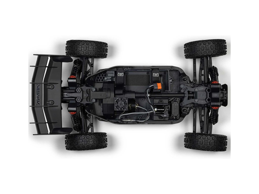 Karoserie je hotová nabarvená a využívá bezsponkový systém upevnění na šasi pro snadnou výměnu akumulátoru a přístup k elektronice. Model je vybaven kvalitní řídicí jednotkou Spektrum 2v1 s integrovaným regulátorem a přijímačem. Na jednotce lze snadno nastavit typ akumulátoru pomocí zkratovací propojky. Jednotka dále obsahuje port pro možnost zapojení externího přijímače. Velký motor 665 nově obsahuje hliníkový chladič s 35 mm ventilátorem pro udržení vhodné provozní teploty za všech okolností. Stačí doplnit akumulátor a nabíječku (prodávají se samostatně), poté můžete vyrazit se svým ARRMA TYPHON MEGA 665 4x4 na zahradu, do terénu nebo na nízkou trávu a užít si jízdu.