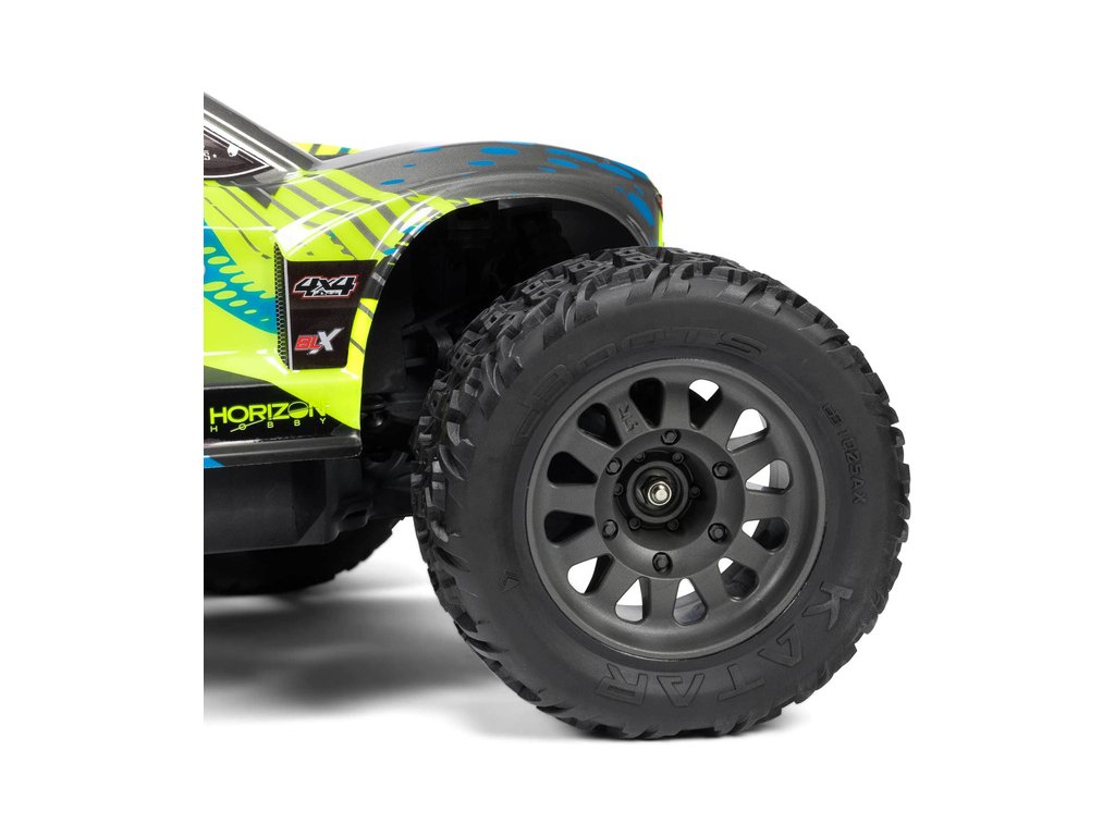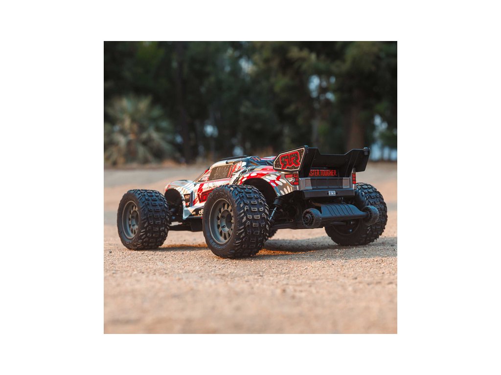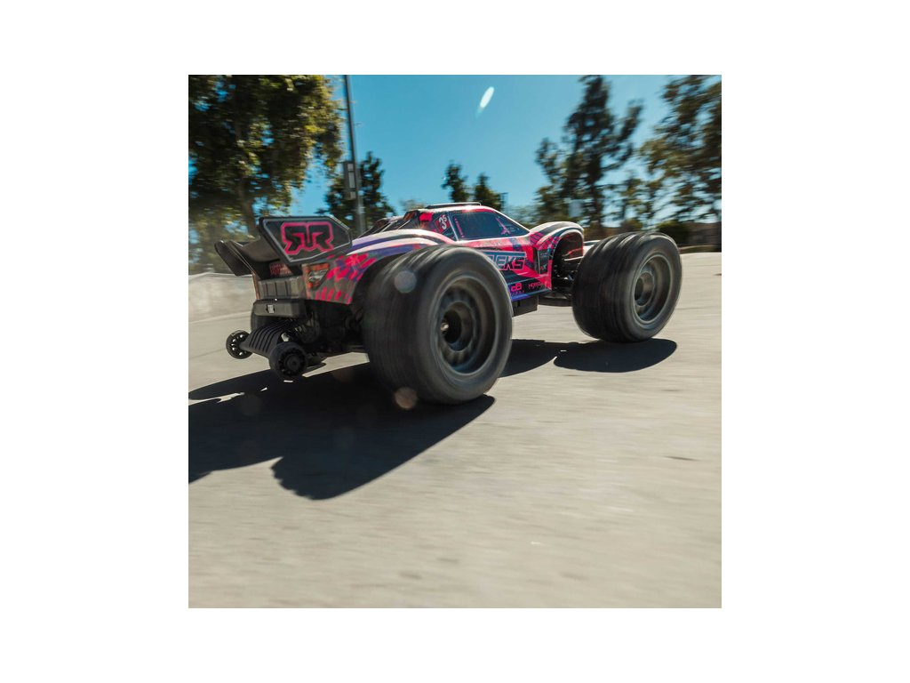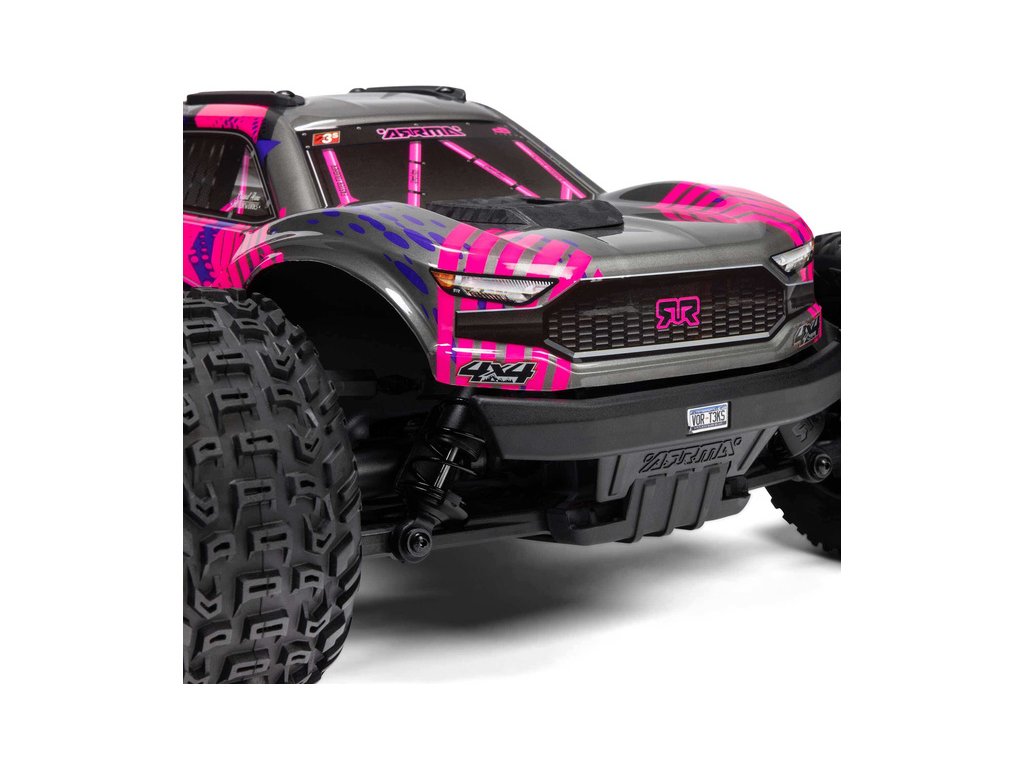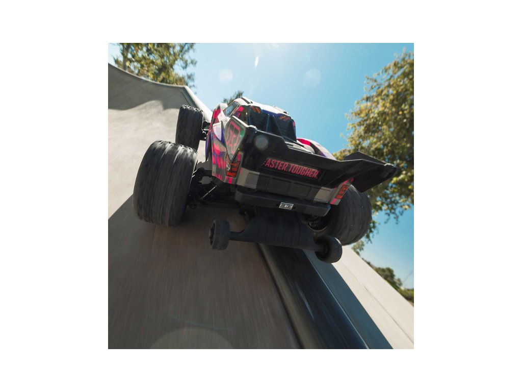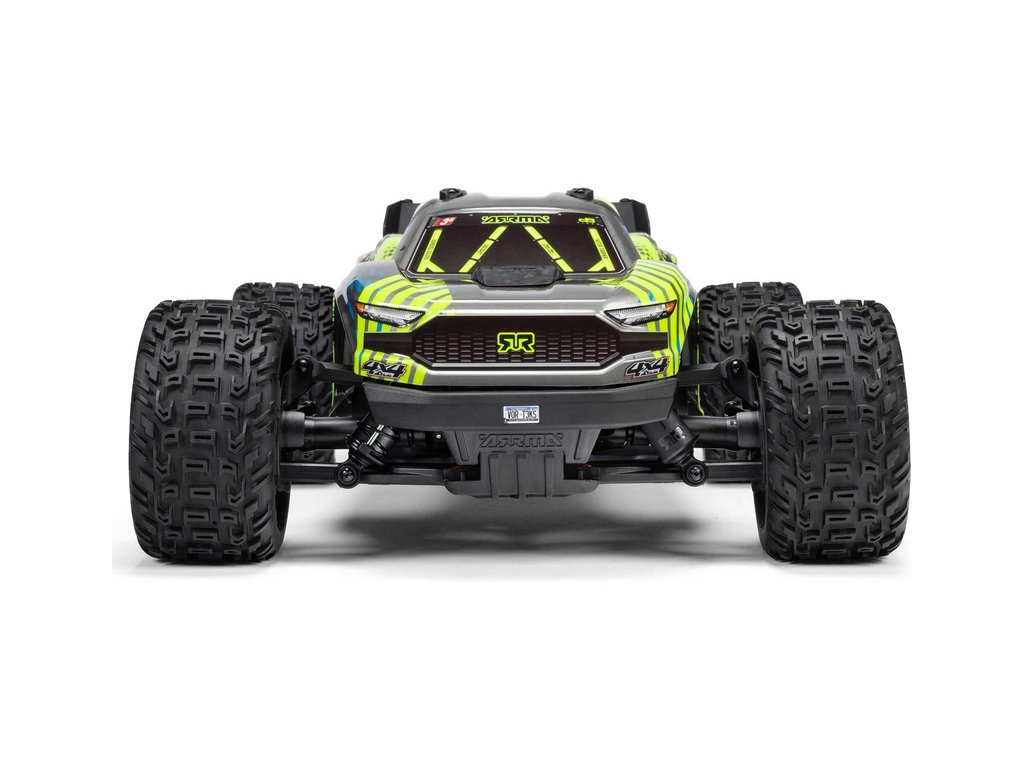 Osvědčená odolná platforma ARRMA® 4X4, vám umožní jezdit vysokou rychlostí téměř v jakémkoli prostředí - v terénu, na šotolině a trávě, na parkovištích i po zpevněných a asfaltových površích. Odolnost šasí vychází ze silného kompozitového podvozku, s prodlouženou výškou chráničů nečistot. Použité kovové převody jsou dostatečně odolné pro střídavý pohon. Výkon je distribuován na jednotlivá kola pomocí přední a zadního diferenciálu. Maximální trakci zajišťují osvědčené pneumatiky dBoots. Vysílač Spektrum SLT poskytuje bezpečný provoz bez výpadků, pro bezstarostnou jízdu jsou na modelu použity voděodolné* komponenty - regulátor s přijímače Spektrum 2-v-1 85A a servo řízení Spektrum S662 s vysokým točivým momentem a kovovými převody.