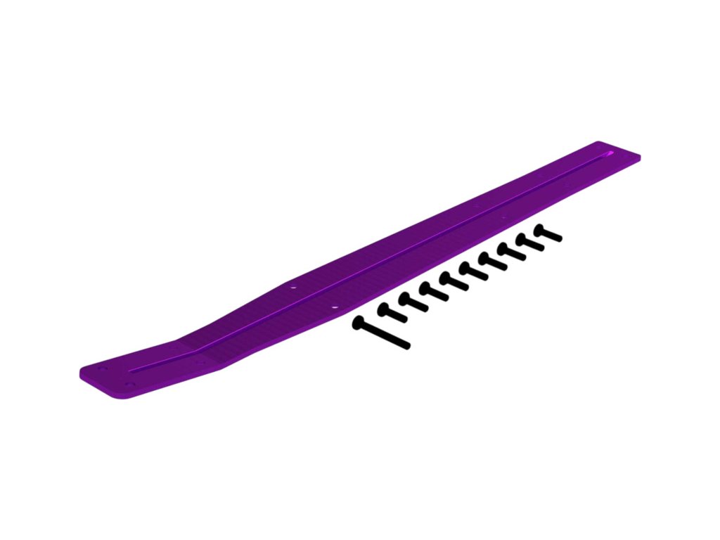 Náhradní díl pro RC modely aut Arrma Mini 1:16 (Mini Kraton): vzpěra šasi, fialová. Hliníková barevně eloxovaná. Šroub M2,5x22 mm (1), M2,5x10 mm (9).
