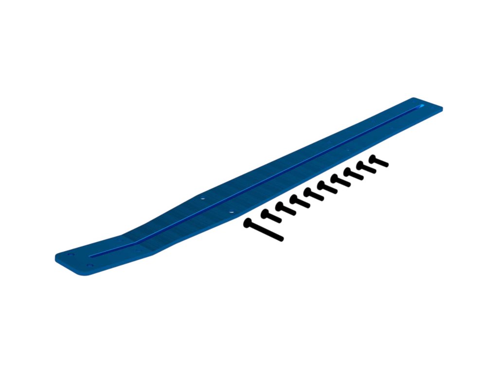 Náhradní díl pro RC modely aut Arrma Mini 1:16 (Mini Kraton): vzpěra šasi, modrá. Hliníková barevně eloxovaná. Šroub M2,5x22 mm (1), M2,5x10 mm (9).