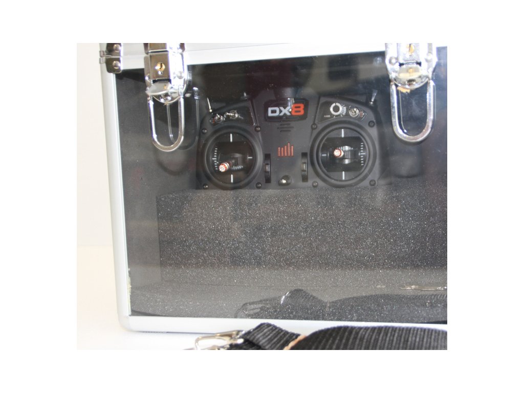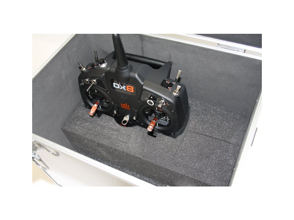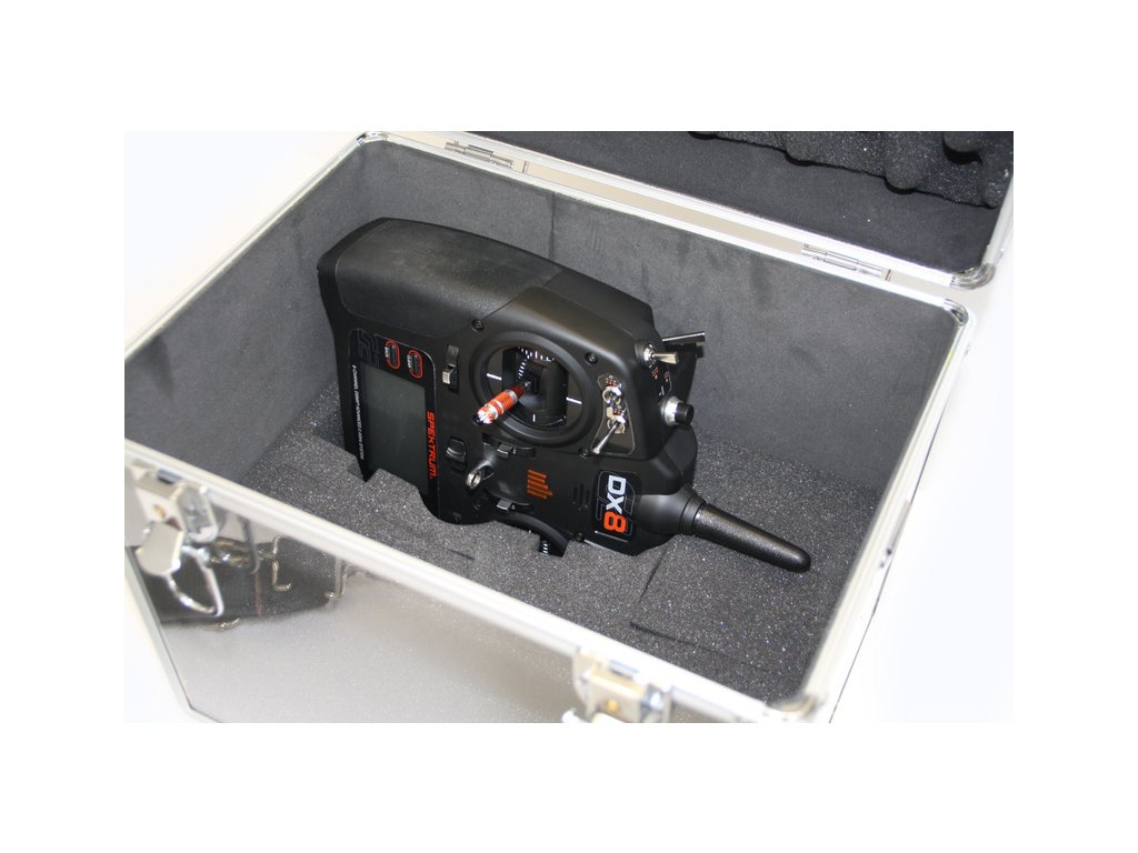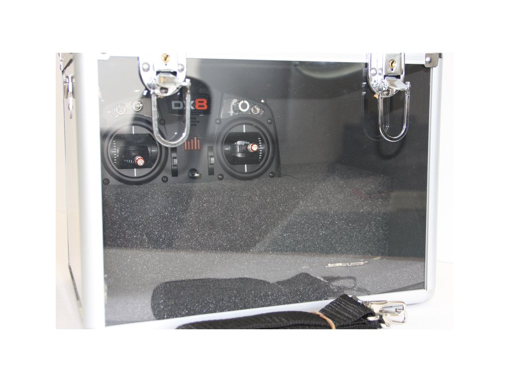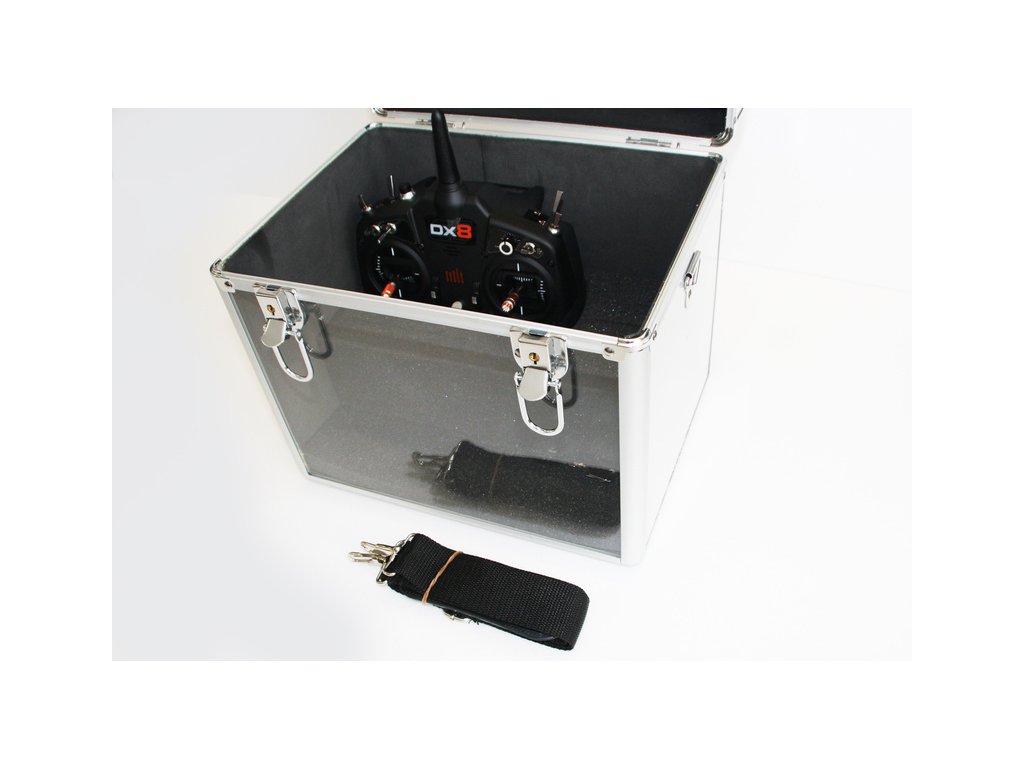 Hliníkový kufr s průhlednou stěnou pro RC vysílače a další příslušenství. Pěnová výplň je připravena pro umístění vysílače, nabíječe, baterie či mikro vrtulník.