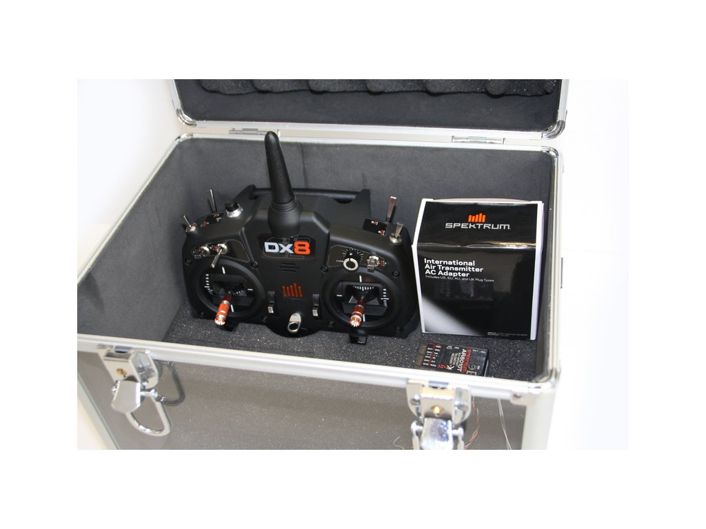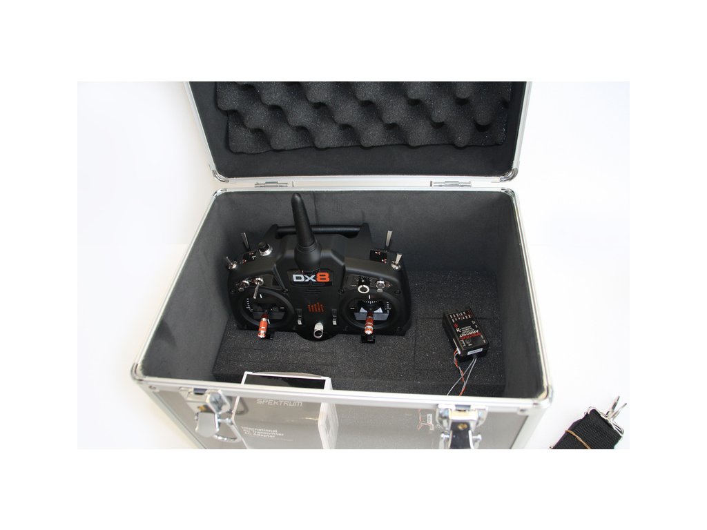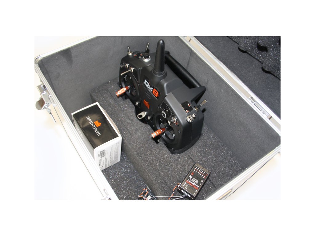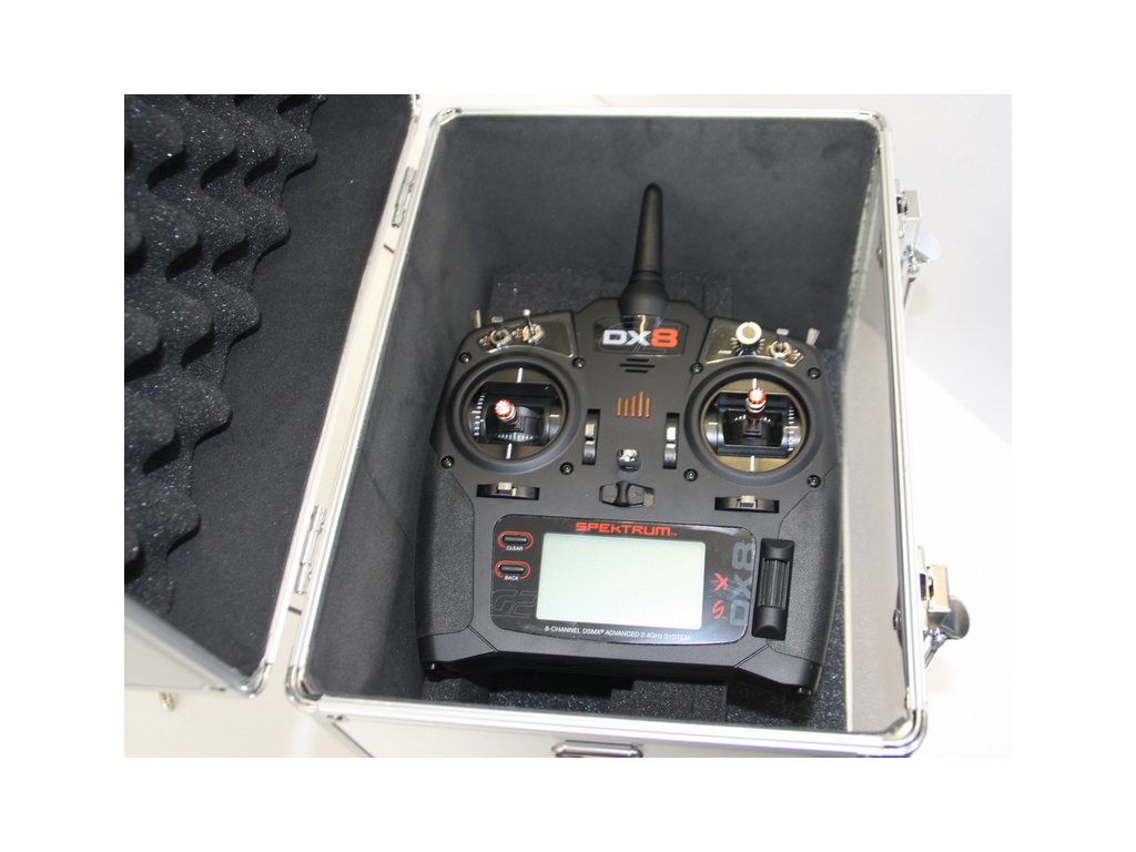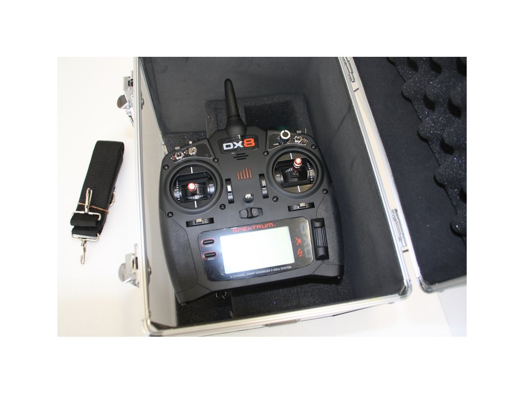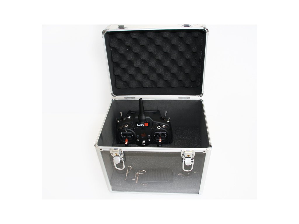 Hliníkový kufr s průhlednou stěnou pro RC vysílače a další příslušenství. Pěnová výplň je připravena pro umístění vysílače, nabíječe, baterie či mikro vrtulník.