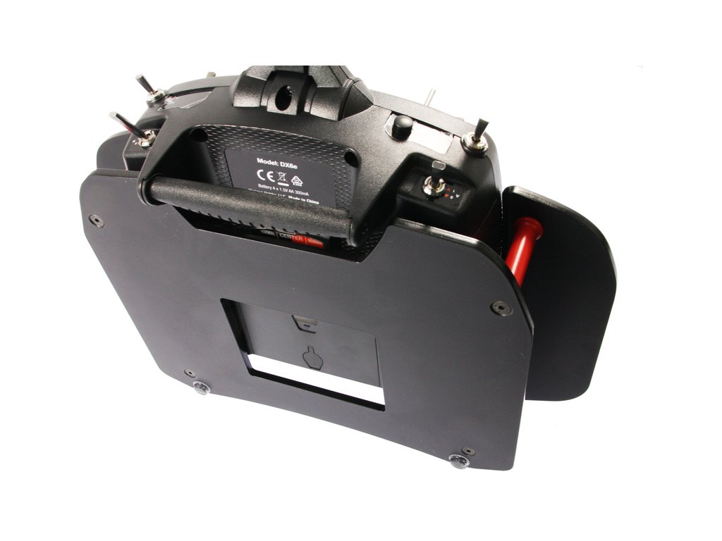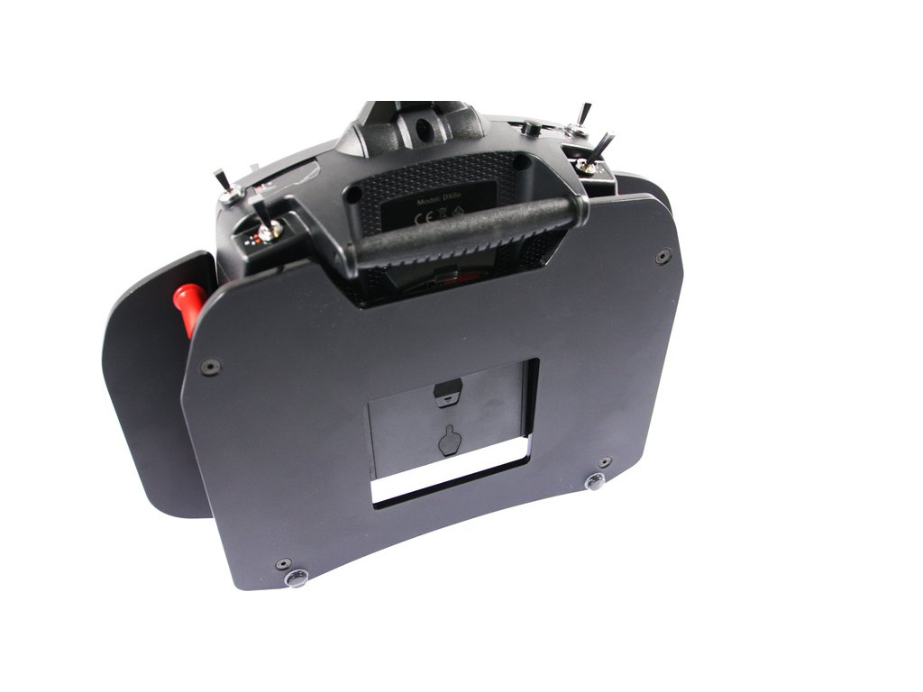 Vysílač Spektrum DX6e/DX8e přesně zapadne do výřezů v horní i spodní desce a pevně v něm drží. Takto sestavený celek můžete vložit jako komplet do svého přepravního kufru.