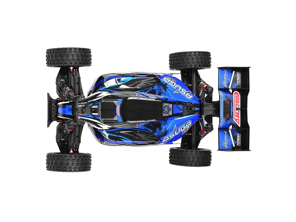 Asuga XLR, která je větší než ostatní modely, přináší zvýšenou světlou výšku, masivní zdvihy odpružení a naddimenzované komponenty na zcela novém podvozku, který využívá osvědčený, odolný a 6S schopný systém hnacího ústrojí, jímž jsou modely Team Corally v měřítku 1/8 proslulé.