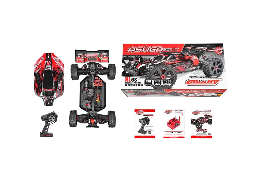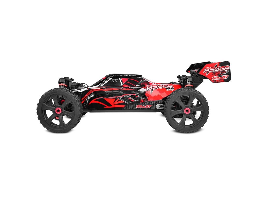 - Asuga XLR, která je větší než ostatní modely s dodatečnou světlou výškou, masivním zdvihem odpružení a naddimenzovanými komponenty, je zcela nový podvozek, který využívá osvědčené komponenty pohonu stávajících modelů Team Corally poháněných 6S. Působivé rozměry modelu Asuga XLR zajišťují ostré jízdní vlastnosti, úžasnou akceleraci, maximální rychlost a nepřekonatelnou odolnost. Změňte svá očekávání a jeďte ve velkém s modelem Team Corally Asuga XLR RTR.