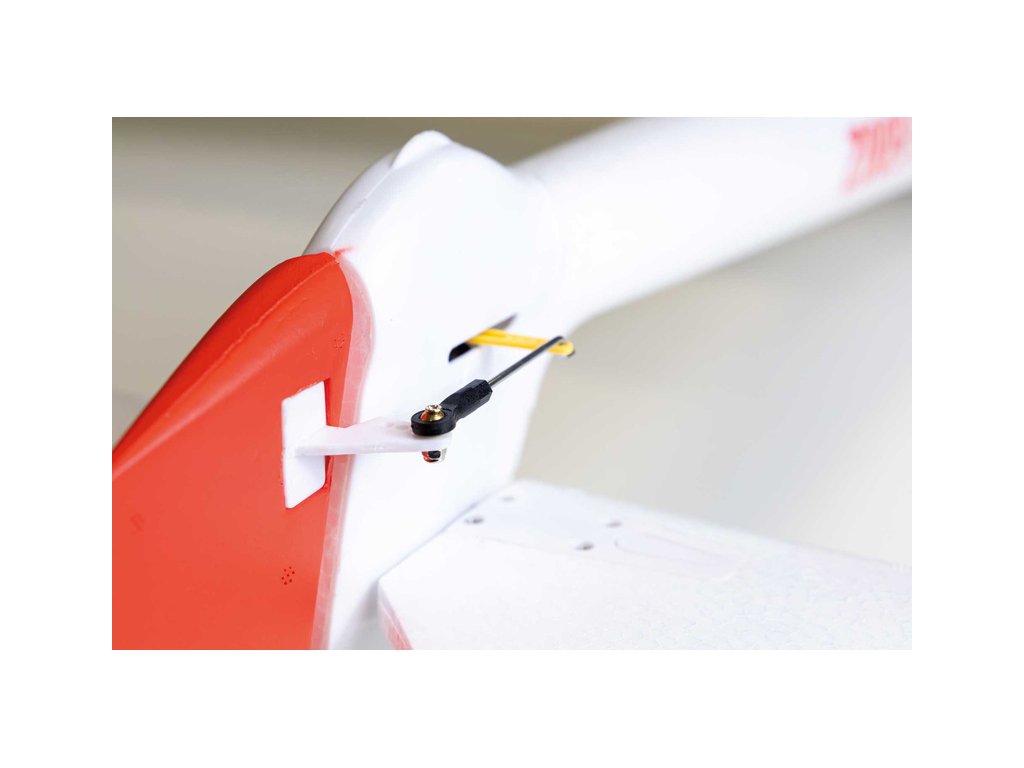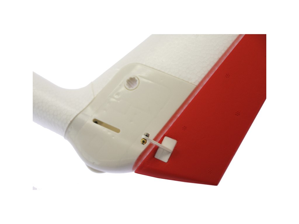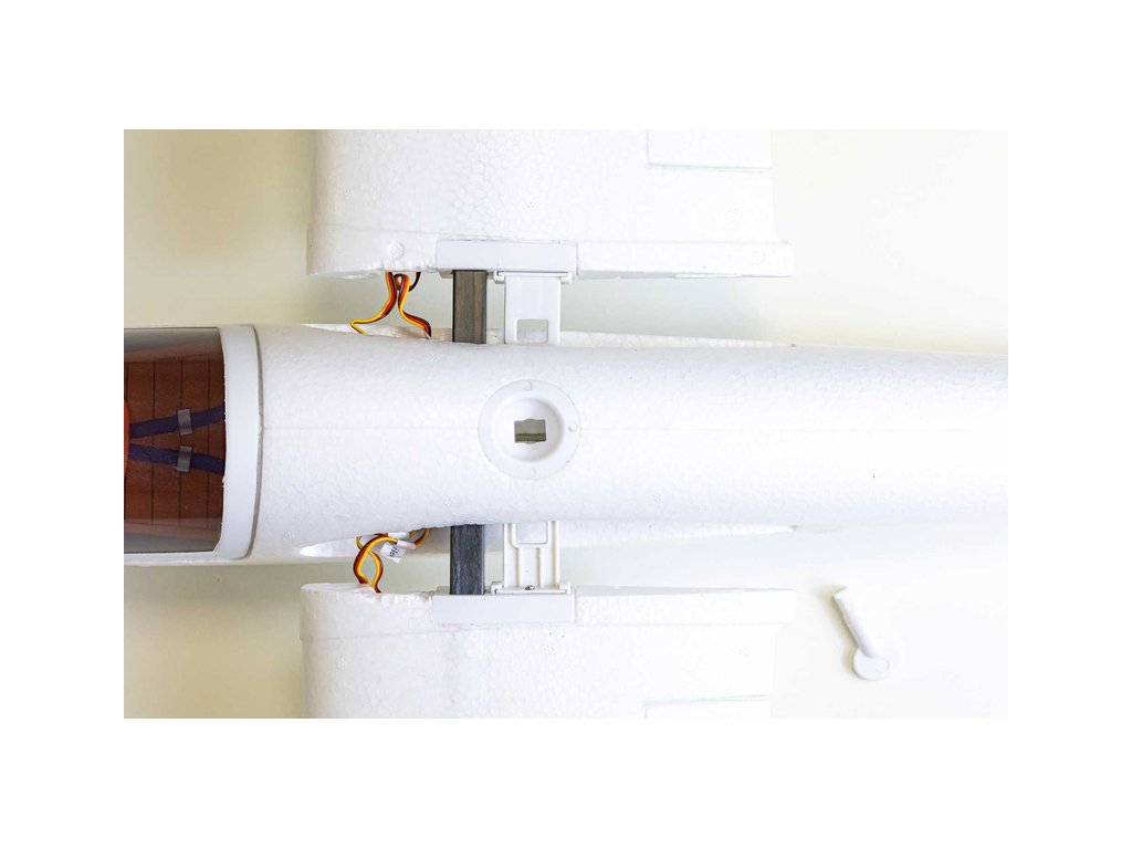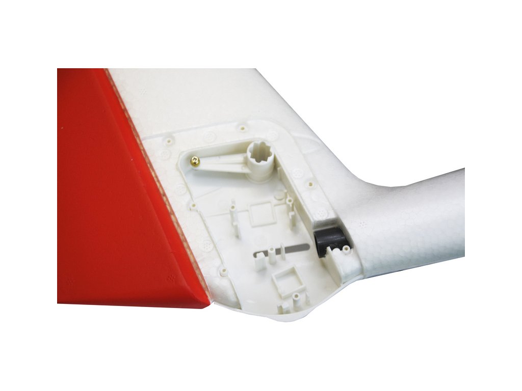 Serva výškového a směrového kormidla jsou v plastové krabičce, do které se velmi snadno nainstalují. V trupu jsou vedeny prodlužovací kabely od serv k přijímači. Osa plovoucí výškovky je součástí této krabičky a je vnitřně drážkována pro spojku obou polovin výškovky.
