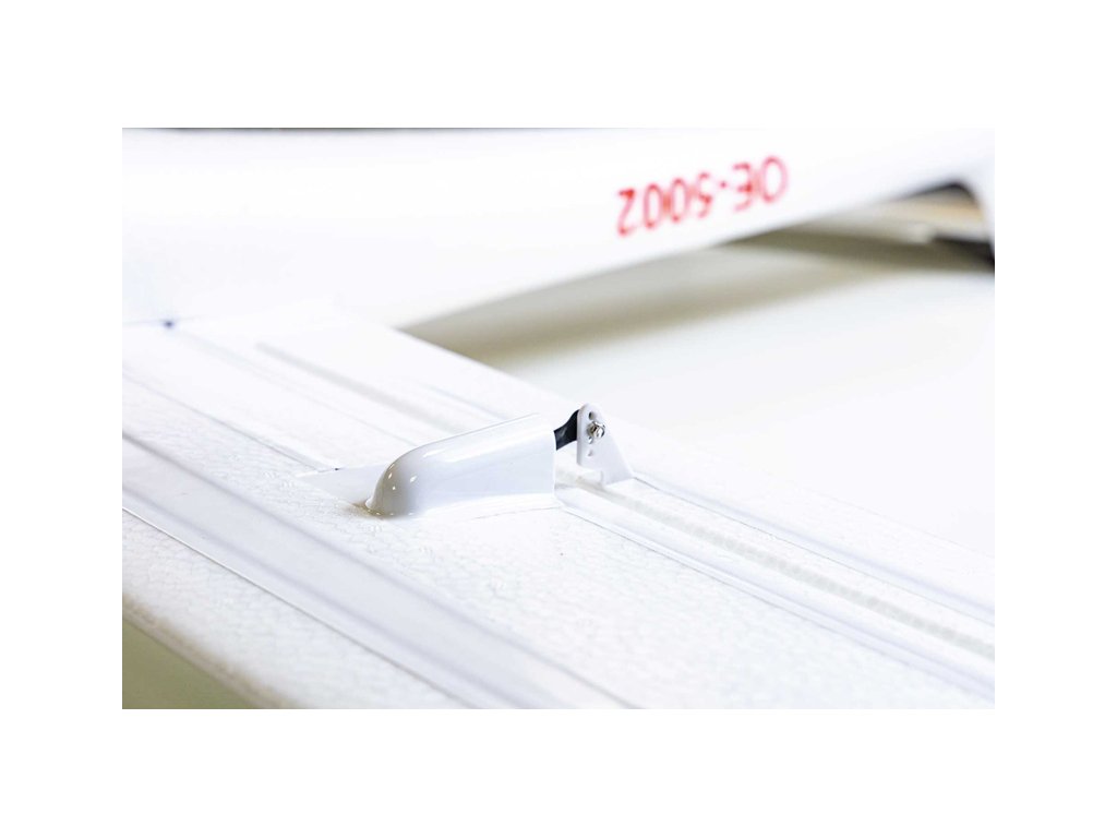 Serva křidélek a klapek se vloží do připravených kapes v křídle a překryjí krytem, protáhnou se prodlužovací kabely a připojí serva. Pak už jen stačí nainstalovat táhla na páky kormidel.