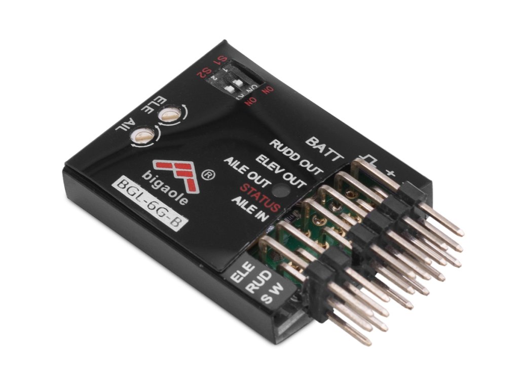 Miniaturní šestiosý autopilot - gyroskopický stabilizátor BGL-6G-B pro stabilizaci modelů letadel s klasickými nosnými plochami, samokřídla (delty) i s motýlkovými ocasními plochami s elektrickým pohonem. Při správném nastavení umožňuje zvýšit stabilitu a obratnost modelu a učinit jej méně závislým na vlivech okolního prostředí. BGL-6G-B vám pomůže „vypnout vítr“ a bude reagovat na jeho náhlé poryvy daleko rychleji než vy. Systém automatické stabilizace může zabránit haváriím a pomůže začátečníkům odstranit značnou část stresu spojeného s prvními kroky v pilotáži RC modelů.