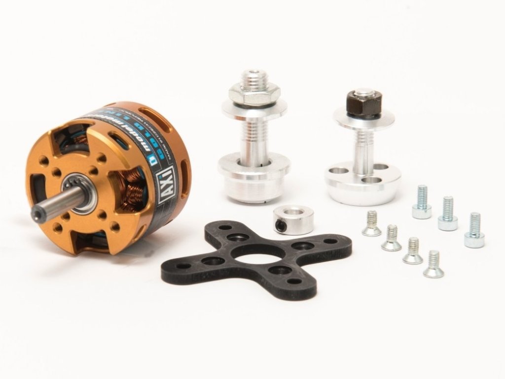 Sada motoru obsahuje: střídavý motor AXI 2808/24 V2 s kabely, unašeč pro pevnou vrtuli, sadu pro zadní montáž, návod.