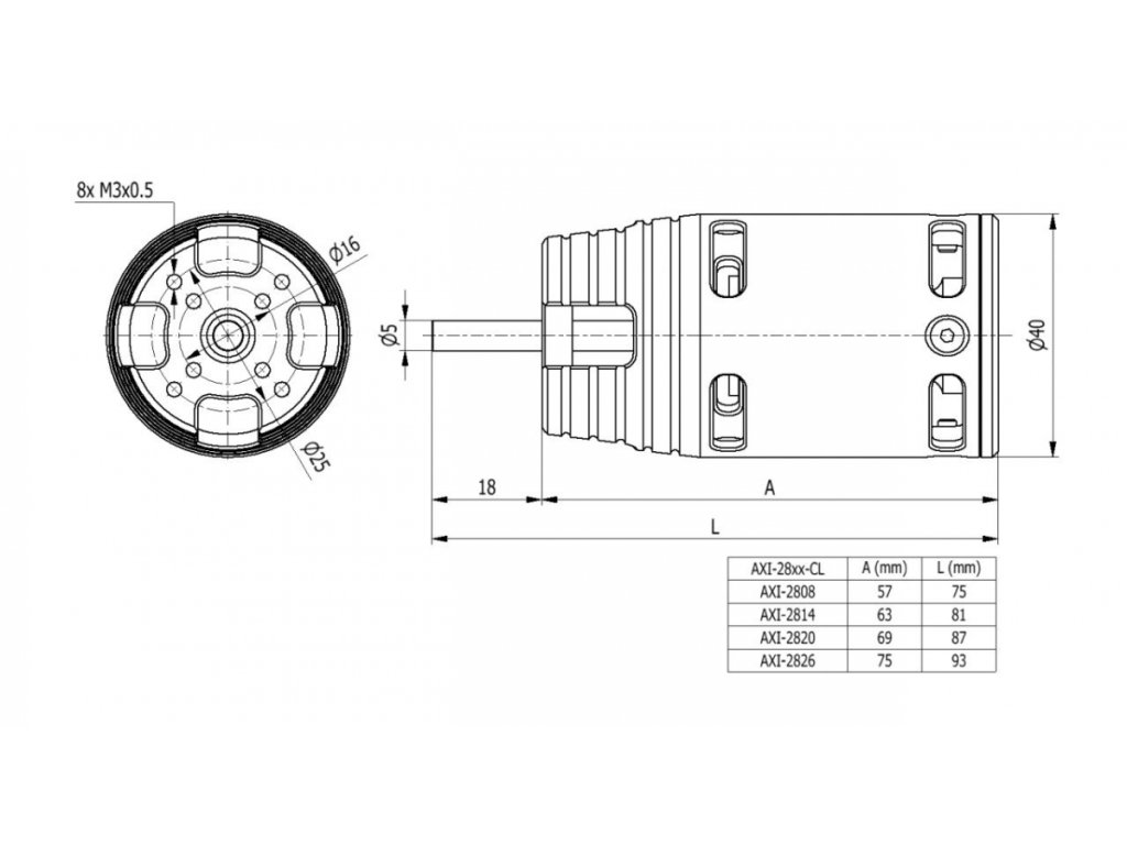 Motory řady AXI 2820/xx Cyclone jsou díky svému velkému kroutícímu momentu vhodné pro přímý pohon velkých vrtulí bez nutnosti použít převodovku, což zajišťuje velmi dobrou účinnost celého pohonu.