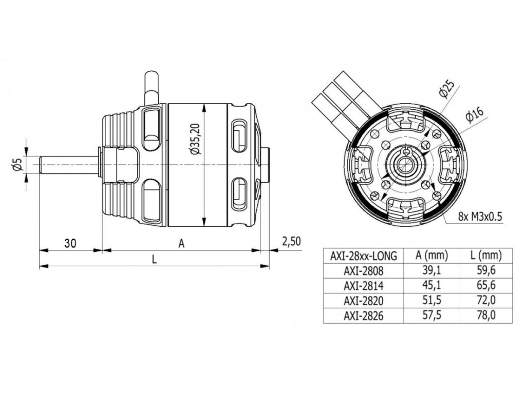 Nová generace motorů AXI 2826/xx V2 má vyšší výkon díky svému propracovanému designu, který ve spojení s integrovaným chladícím systémem na principu turbínového efektu proudění vzduchu udržuje vinutí motoru chladnější až o 20%. Speciální verze „Long“ je opatřena prodlouženým kónickým předním čelem pro snadnou montáž do trupů větroňů o malém průměru přídě, v provedení XL má ještě navíc prodlouženou hřídel motoru.