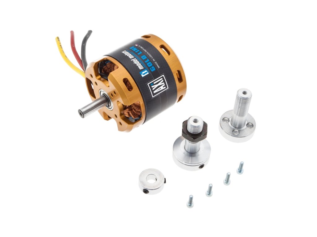 Sada motoru obsahuje: střídavý motor AXI 5320/34 V2 s kabely, unašeč pro pevnou vrtuli, sadu pro zadní montáž, návod.