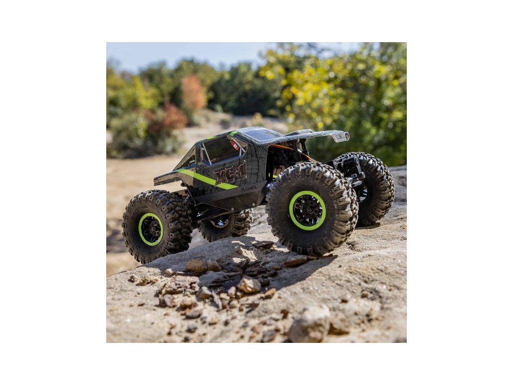 Malý zábavný a extrémně obratný RC model auta na dálkové ovládání, s novou platformou šasi Axial AX24 a karoserií XC-1. Model nabízí vše co příznivci skalních výstupů, přejíždění překážek, ale i domácích postavených tratí potřebují. Šikmé boční desky podvozku s kluzáky vám pomohou pohybovat se v úzkých formacích. Tlumiče s dlouhým zdvihem, 4-prvkové zavěšení s pevnými nápravami a šnekový převod rozvodovky kombinující snadnou ovladatelnost, spolehlivý přenos výkonu a schopnost projíždět nerovný terén.