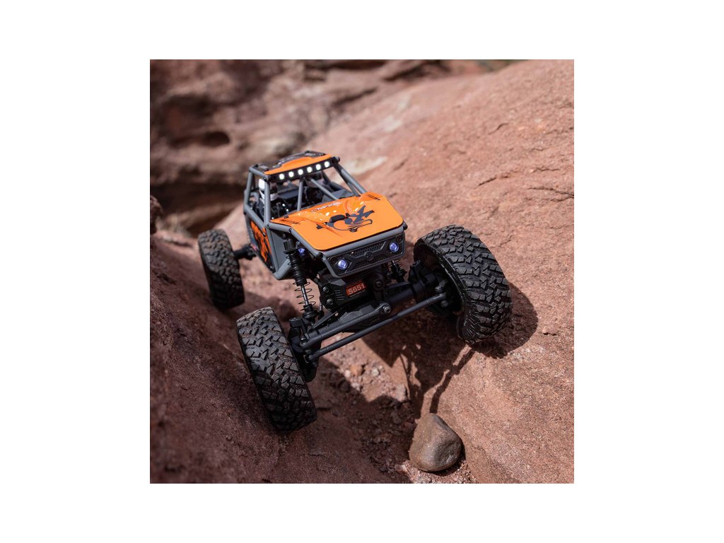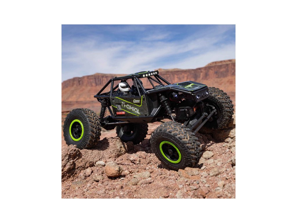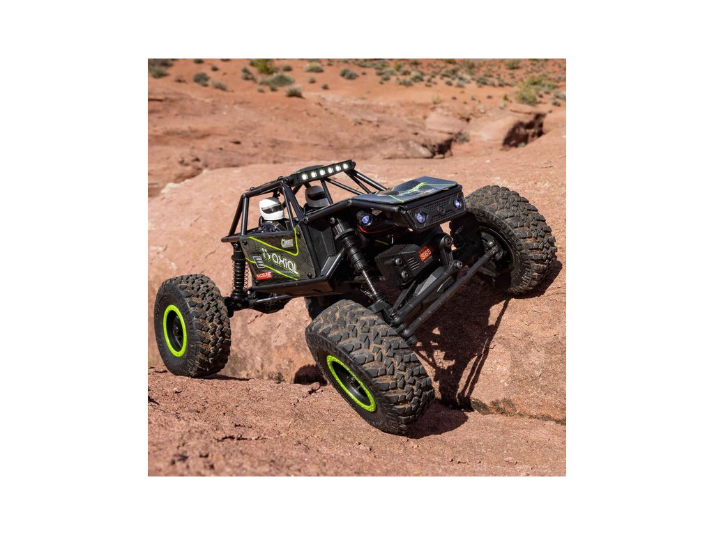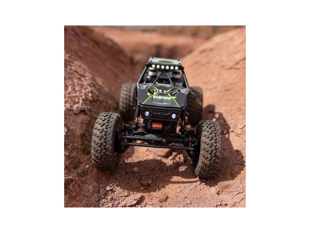 Axial® umocňuje realismus RC modelu UTB18 Capra™ 4WD v měřítku 1:18 rovněž funkčními LED světlomety, světelnou lištou a dopředu směřujícími Rock světly pro možnost jízdy i po západu slunce.