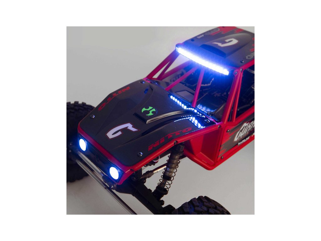 - Obsahuje tří-dílné licencované disky Beadlock Raceline a pneumatiky Nitto Trail Grapplers 1.9 M/T