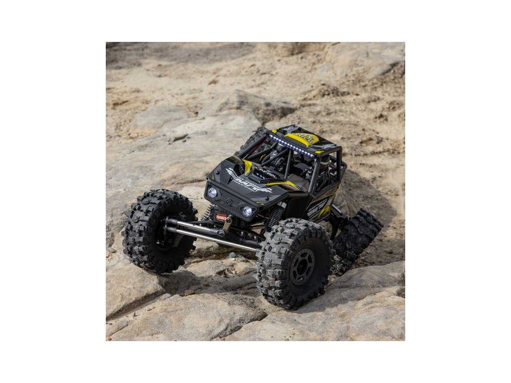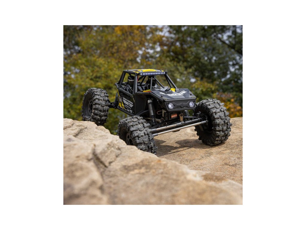 RC auto je určeno do skalnatého terénu a pro soutěžní lezení. Model je kompletně sestaven a připraven k jízdě. K ovládání je přiložena 3-kanálová RC souprava Spektrum DX3 v pásmu 2,4GHz. K základním charakteristikám modelu patří 4-bodové zavěšení náprav, kompletní osazení kuličkovými ložisky, velká světlá výška s portálovými nápravami Currie F9, řízená přední i zadní náprava pro maximální manévrovatelnost. Pomocí tlačítka třetího kanálu přiloženého vysílače Spektrum™ DX3™ můžete řídit zadní nápravu ve třech polohách (úplně doleva, úplně doprava, rovně). Vysílač DX3 lze naprogramovat i pro 5 polohové řízení zadní nápravy pro ještě větší možnosti a variabilitu, což oceníte zejména při závodní jízdě.