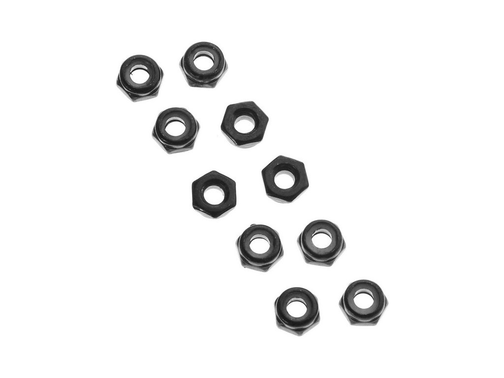 Náhradní díl pro RC model auta Axial na podvozcích SCX10 II, RR10, Rock Racer 1:10: matice samojistná M3 černá (10 ks).