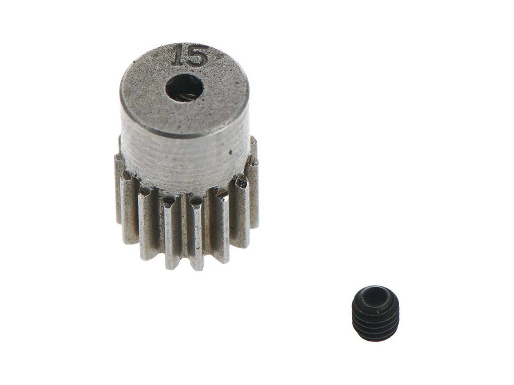 Axial pastorek na hřídel 2.3 mm s 15 zuby a modulem ozubení 48DP pro RC modely aut. Vyrobeno z sintrované oceli. Součástí balení je červík.