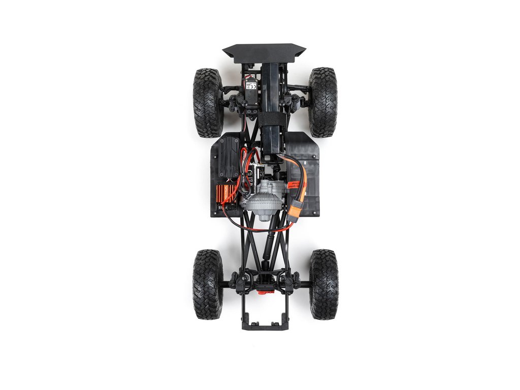 Realistické, vysoce pevné šasi SCX10™ II je sestaveno z ocelových C-podélníků s příčnými výztuhami pro zvýšení tuhosti. Tvarovaná kluzná deska výrazně snižuje zasekávání a díky zjednodušenému designu je údržba rychlá a snadná. Pro variabilitu model dále obsahuje nastavitelný držák na karosérii, nastavitelné držáky na nárazník s upevňovacími body stabilizátorů a lože serva pro volitelnou dvourychlostní převodovku.