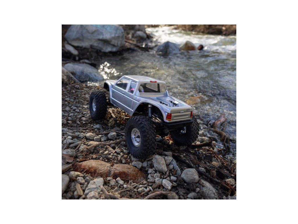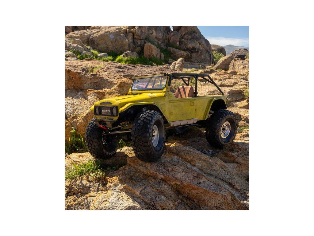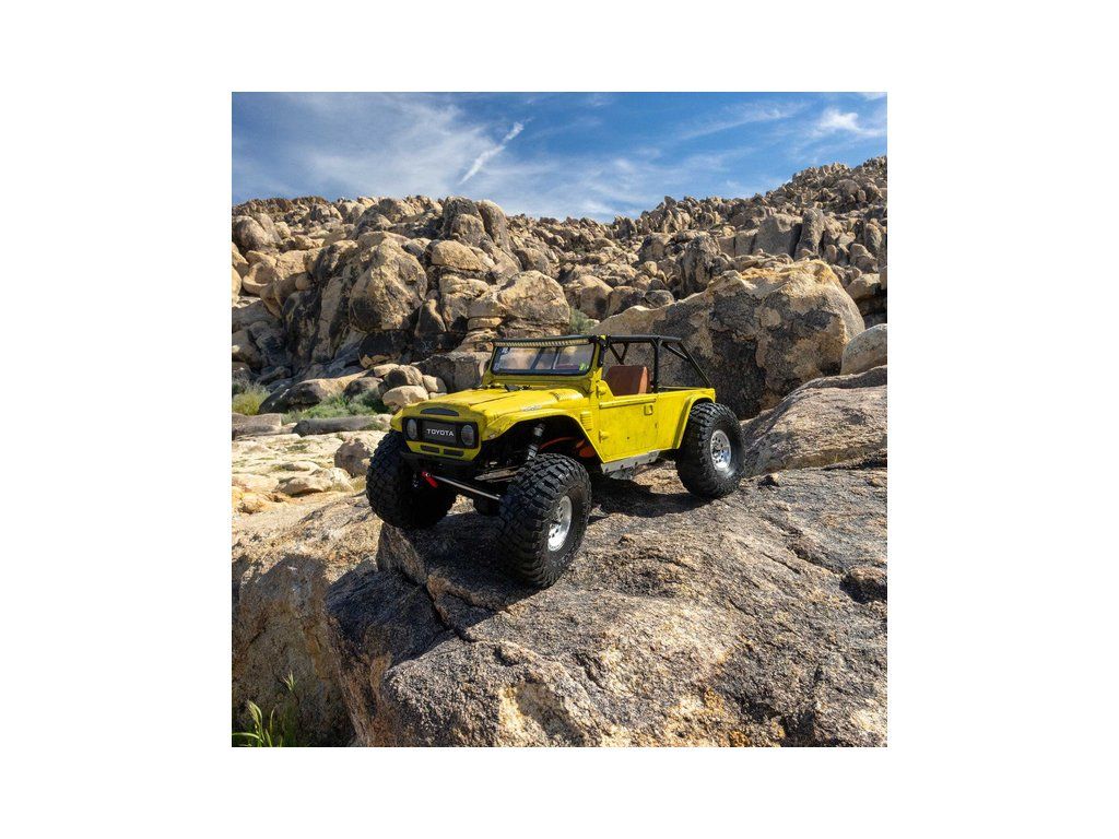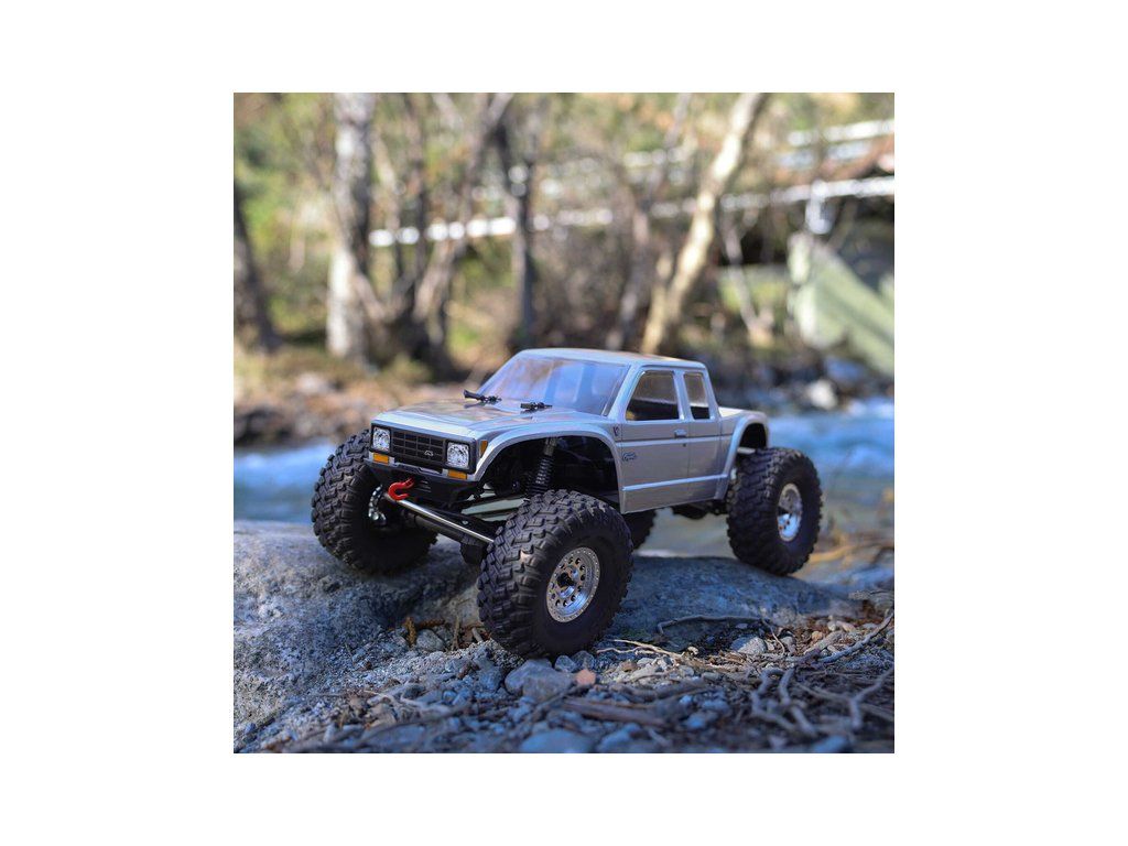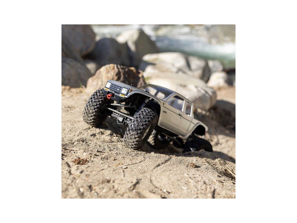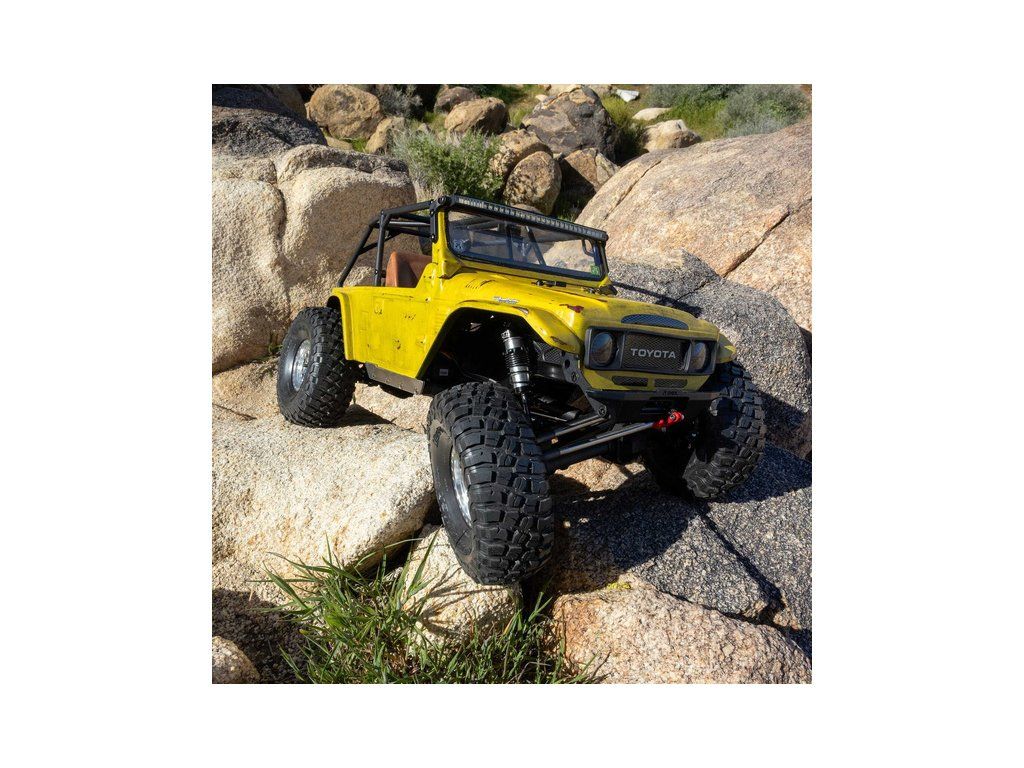 Stavebnice Axial není jen nesestavená verze RTR. Jedná se o vylepšenou verzi! Převodovka LCXU umožňuje volitelně instalovat speciální funkci pro crawlery DIG (zablokování zadní nápravy). Táhla zavěšení jsou 6 mm z nerezové oceli. Nové výkonné věže tlumičů vám nabízejí několik možností montáže pro optimalizaci odpružení. Namontujte tlumiče svisle pro lineární odpružení nebo je nakloňte pro progresivní tlumení a nižší těžiště. Dále jsou použity přímé nápravy AR45 a tři nastavitelné přihrádky pro akumulátory poskytují velkou variabilitu napájení a nastavení těžiště. Úchyty Panhard tyče umožňují i instalaci portálových náprav (prodávají se samostatně). Konstrukce podvozku je tříbodová přední s Panhardskou tyčí a čtyřbodová zadní. Toto zavěšení poskytuje velký výkyv náprav a přesnou geometrii. Instalovány jsou šikmé podvozkové prahy, díky kterým můžeme model hladce sklouznout po překážce.