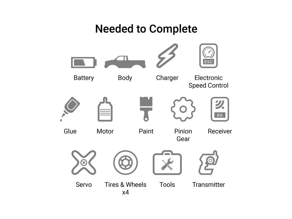 Pokud se rozhodnete pro stavbu SCX10 III Base Camp 1:10 4WD, budete potřebovat k dokončení tyto komponenty: