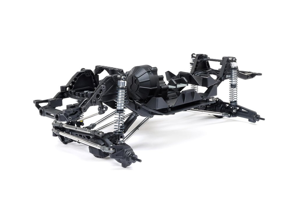 Stavebnice Axial Base Camp Kit není jen nesestavená verze RTR. Jedná se o vylepšenou verzi! Převodovka LCXU obsahuje speciální funkci pro crawlery DIG (zablokování zadní nápravy). Táhla zavěšení jsou 6 mm z nerezové oceli. Dále jsou nově použity přímé nápravy AR45.