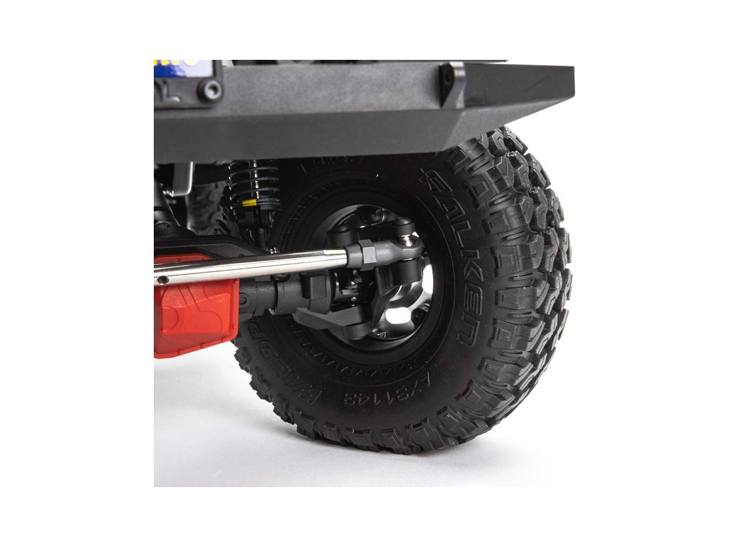 Repliky pneumatik Falken Wildpeak M/T 1.9 jsou realistické a mají a výbornou přilnavost pro lezení po skalách a kopcích. Auto má také rezervní pneumatiku Axial®, připravenou k použití.