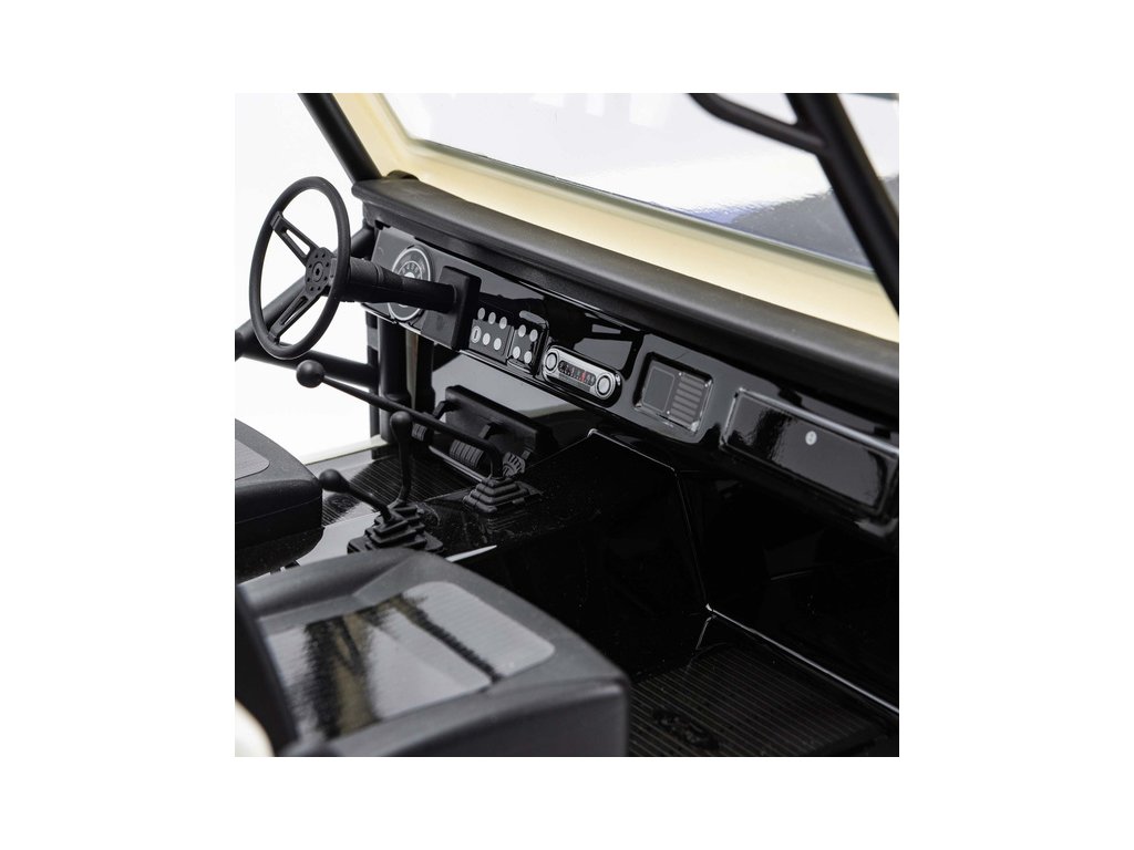 Když se podíváte do interiéru 2-dveřové karosérie, zaujme vás celá řada maketových detailů. Věrně tvarovaná sedadla, palubní deska s budíky, rádiem a schránkou, volant se sloupkem, řadicí páky a nožní pedály jsou součástí standardní výbavy.