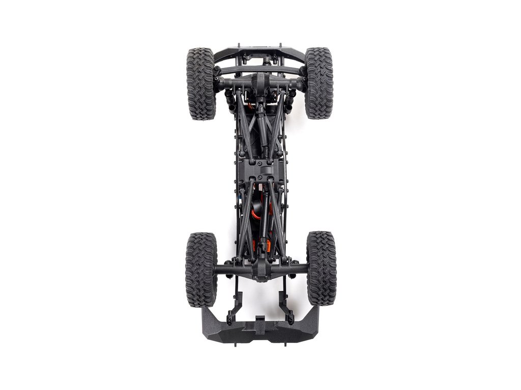 Stejně jako platforma většího podvozku SCX10™ II v měřítku 1:10, má i podvozek SCX24™ robustní ocelové rámové podélníky s profilem C, které zajistí vysokou tuhost a pevnost podvozku a udržují podvozek dostatečně tuhý i při velkém překroucení náprav.