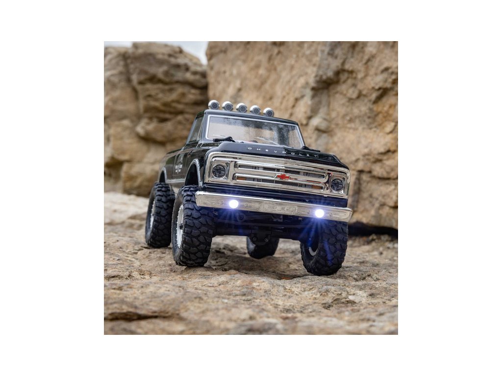 RC model auta Chevy C10 má všechny schopnosti osvědčené platformy Axial SCX24. Stálý pohon 4WD a přední 3bodové a zadní 4bodové zavěšení umožňující překonávat velké překážky. Šneková ozubená kola na nápravách zvyšují světlou výšku. Realistické ocelové C-rámy podvozku zajišťující vynikající tuhost. Detailní karoserie, přední LED osvětlení v nárazníku a licencovaná kola Method s pneumatikamih BF Goodrich, které snadno zvládnou jak silniční, tak terénní výzvy.