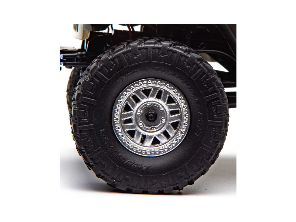 Podvozek SCX24™ zvládne každou výzvu díky trvalému pohonu všech čtyř kol, 3-bodovému přednímu a 4-bodovému zadnímu zavěšení, které se vždy přizpůsobí terénu. Realistický ocelový rám odolá tvrdým nárazům, šnekové převody na nápravách zvyšují světlou výšku. Nový, o 22 mm delší rozvor zvyšuje stabilitu, zatímco robustní přední a zadní nápravy, přední čepy a ocelové poloosy vám umožní s jistotou slézat překážky. Výkon zajišťuje motor Dynamite® 88T a 2-článková LiPol baterie. Součástí je rádiový systém 2,4GHz pro přesné a spolehlivé ovládání.