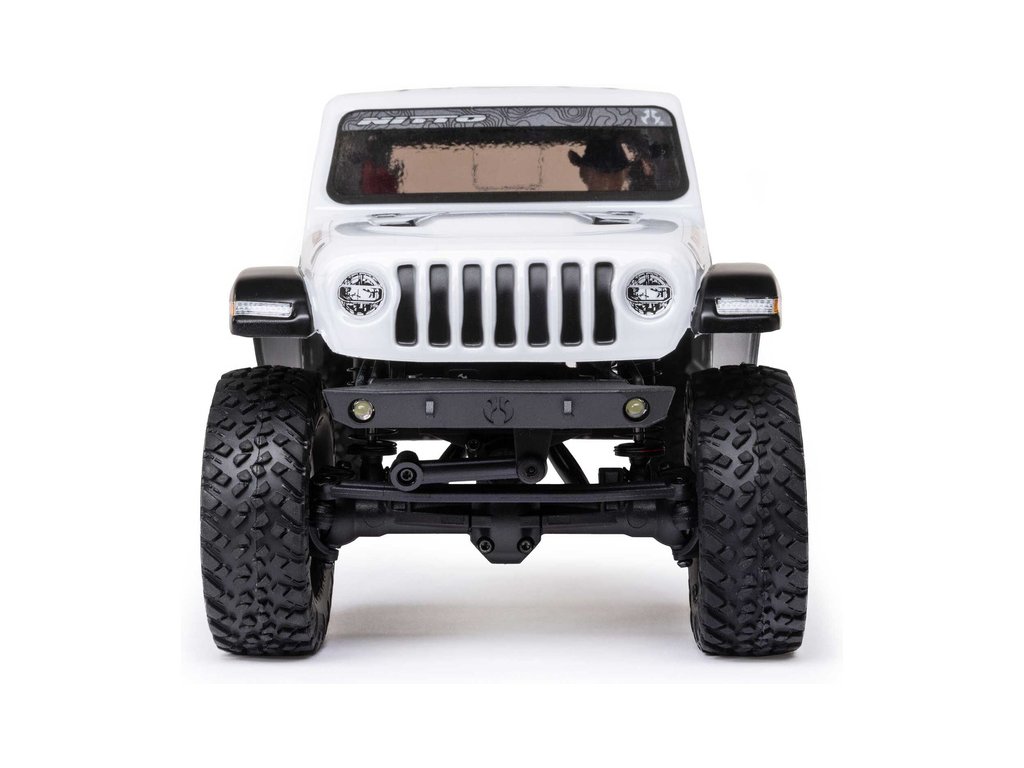 RC model auta v měřítku 1:24 Axial SCX24 s karosérií Jeep JT Gladiator V2 a LED osvětlením v předním nárazníku. Vše potřebné je v balení. Kromě osvědčených terénních vlastní šasi SCX24 je model vybaven novou řídící jednotkou a RC soupravou Spektrum. Vylepšení doplňují olejem naplněné tlumiče, které hladce pohlcují nerovnosti a model zůstává stabilní i v terénu. Doba provozu modelu je až 40 min.