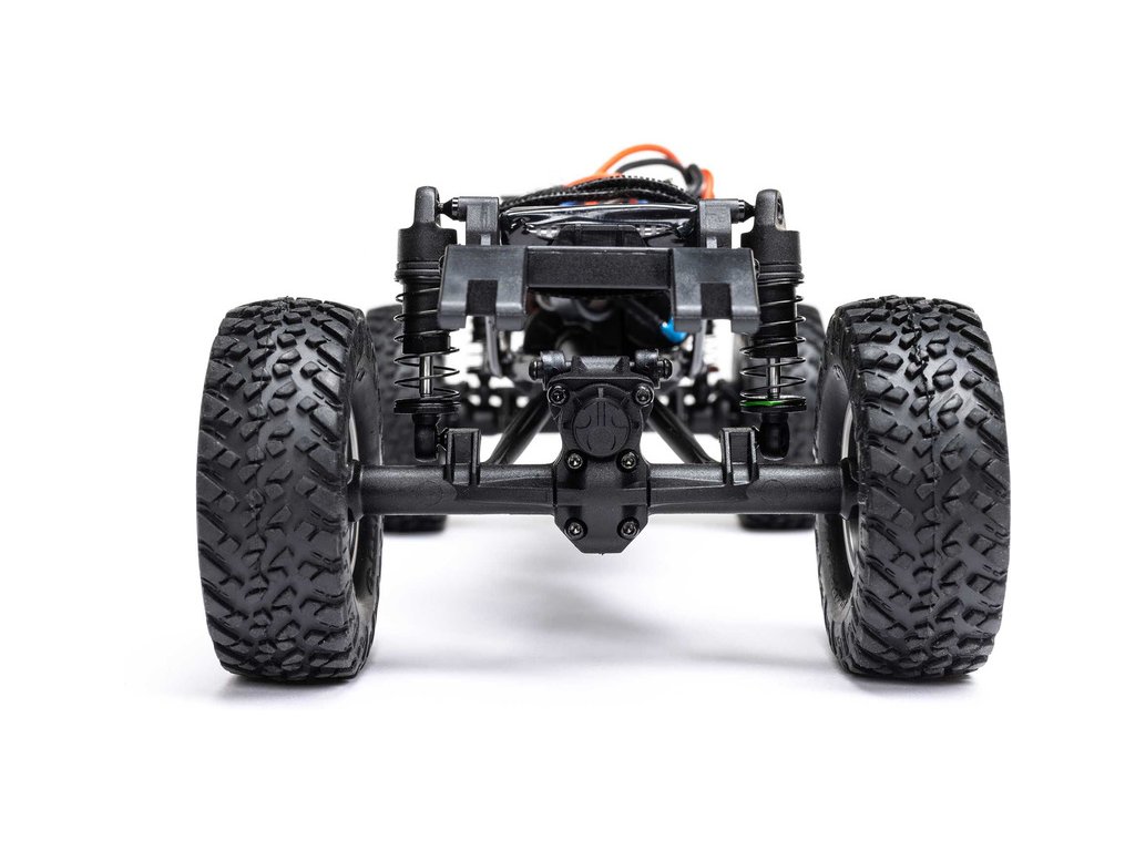 Podvozek SCX24™ zvládne každou výzvu díky trvalému pohonu všech čtyř kol, 3-bodovému přednímu a 4-bodovému zadnímu zavěšení, které se vždy přizpůsobí terénu. Realistický ocelový rám je dostatečně tuhý proti kroucení, šnekové převody na nápravách zvyšují světlou výšku. O 22 mm delší rozvor zvyšuje stabilitu, zatímco robustní přední a zadní nápravy, přední čepy a ocelové poloosy vám umožní s jistotou slézat překážky.